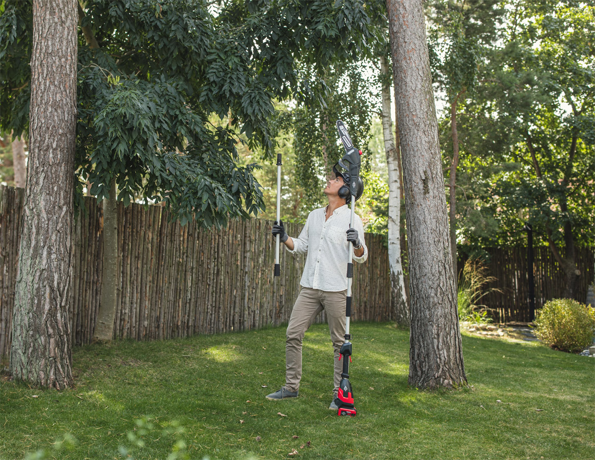 - Prodlužovací hliníková tyč o celkové délce 3 m, umožňuje rychlé a bezpečné řezání vyšších větví