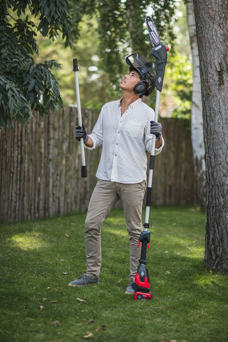 - Prodlužovací hliníková tyč o celkové délce 3 m, umožňuje rychlé a bezpečné řezání vyšších větví