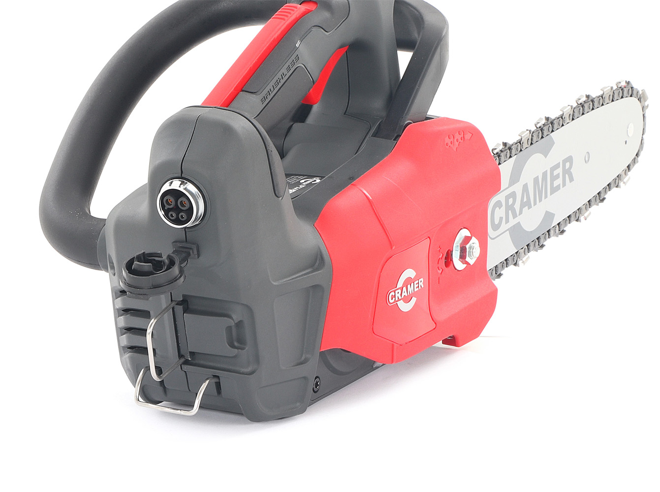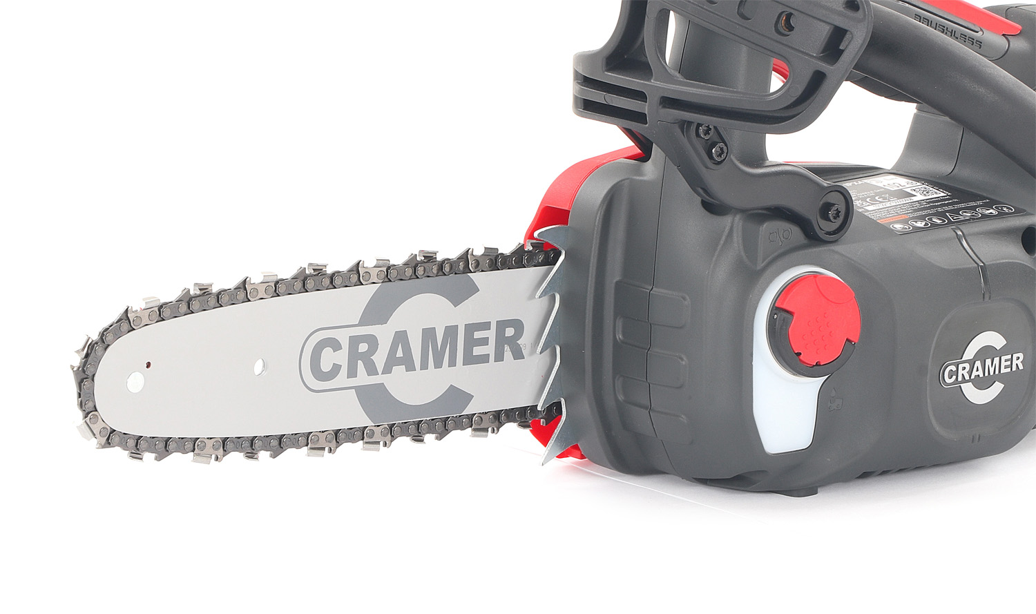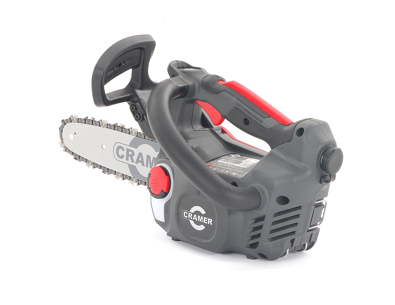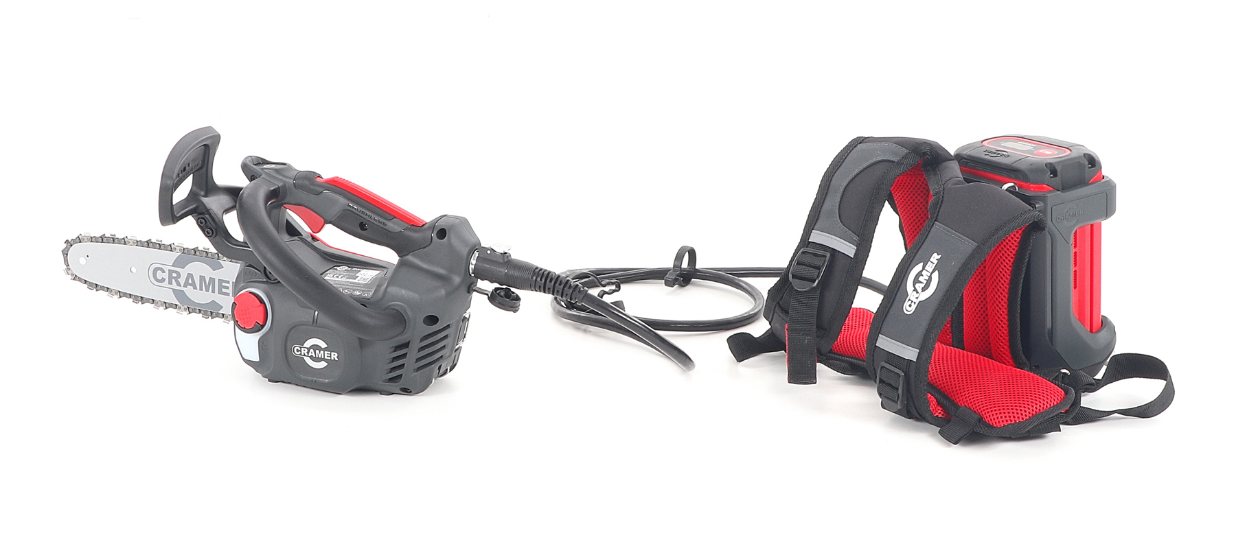 Nejlepší řetězová ruční pila Cramer ve své třídě poskytuje profesionálním uživatelům výkonnou, ale lehkou řetězovou pilu. S hmotností pouhých 2,1kg je Cramer 82TCS15 nejlehčím produktem na trhu a nabízí vynikající poměr výkonu a hmotnosti díky silnému 1,5 kW bezkomutátorovému motoru. Jeho výkon je srovnatelný s benzínovými produkty o objemu 35 ccm. Dodává se s ergonomickým zádovým popruhem pro snadné přenášení a uložení baterie Cramer 82V, která je připojena pomocí napájecího kabelu k motorové pile. Model 82TCS15 můžete také použít s bederním pásem Cramer, který je k dispozici samostatně (volitelné příslušenství).