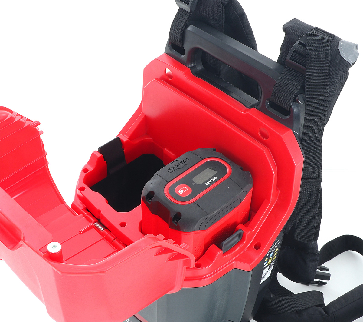 82B36 je náš nejvýkonnější bateriový zádový foukač pro profesionální použití, který se vyznačuje ergonomickým designem pohodlné zádové části foukače a praktičností při práci na větších plochách, jako jsou parkoviště, sportoviště a městské oblasti. Bezkomutátorový motor o výkonu 3,1 kW s velmi nízkou hlučností poskytuje výkon srovnatelný s benzínovým foukačem o objemu 64 ccm.