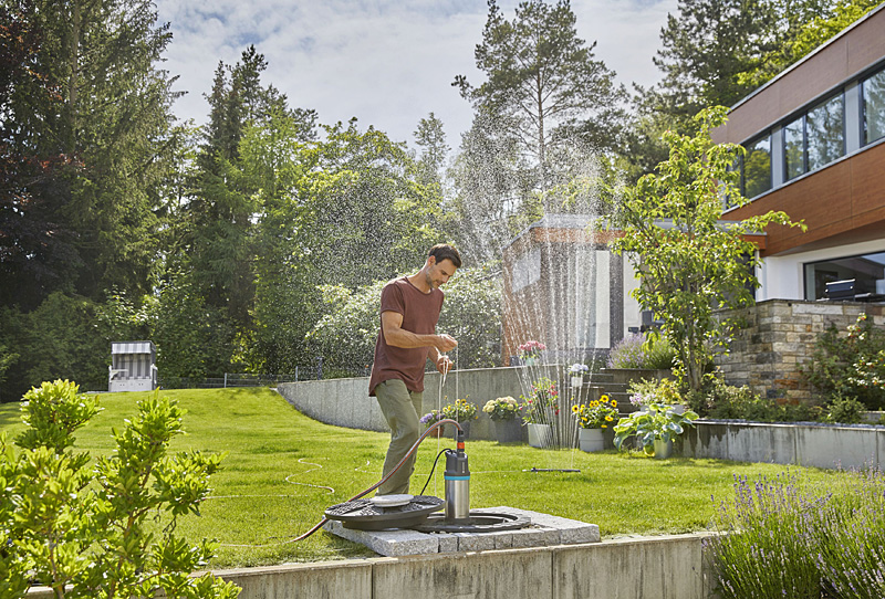 Toto čerpadlo pro studny a zásobníky disponuje vysokým tlakem a téměř nehlučným provozoem a je ideální pro čerpání vody z velkých hloubek. S GARDENA ponorným tlakovým čerpadlem s výkonem až 6100 l/h a tlakem 4,7 baru můžete dokonce provozovat až čtyři zavlažovače současně. S tímto čerpadlem šetříte vodu a energii zcela jednoduše: funkce automatického přepínání spustí čerpadlo, když je voda potřeba a zastaví jej automaticky, když už vodu nepotřebujete - to je to pravé řešení pro vaše zásobování domácnosti vodou a pro větší pohodlí při zavlažování zahrady. Je také možný automatický provoz se zavlažovacím počítačem. Díky integrovanému zpětnému ventilu je voda k dispozici velmi rychle. Detekce úniku vám pomůže v případě, že vodovodní potrubí kape, protože zastaví čerpadlo, a tím jej chrání poškozením. Program malého objemu vody zajišťuje hladký provoz pračky nebo systému Micro-Drip.