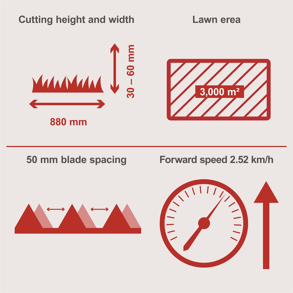 Benzínová lištová sekačka Scheppach BMS 196-88 je ideální pomocník v případě, kdy je pozemek sekán nepravidelně nebo je účelem sekání trávy na krmení zvířat, tj. je sekána přerostlá nebo vysoká tráva. Ideálně se tak hodí na sekání luk, velkých přírodních zahrad nebo sadů, a to i tam, kde je terén více svažitý a nerovný. Díky velkým kolům s hlubokým vzorkem s dobrou trakcí si poradí i s těžším terénem. Výkonný motor, široký záběr sekací lišty 88 cm a rychlost přes 2,5 km/h jsou zárukou rychle odvedené práce. Sekačka tak pohodlně poseká pozemky o výměře i kolem 3000 m2. Práci dále usnadní jednoduché startování pomocí startovací šňůry, nastavitelná výše střihu ve třech krocích a možnost výškového nastavení řídítek dle výše postavy nebo povahy terénu.
