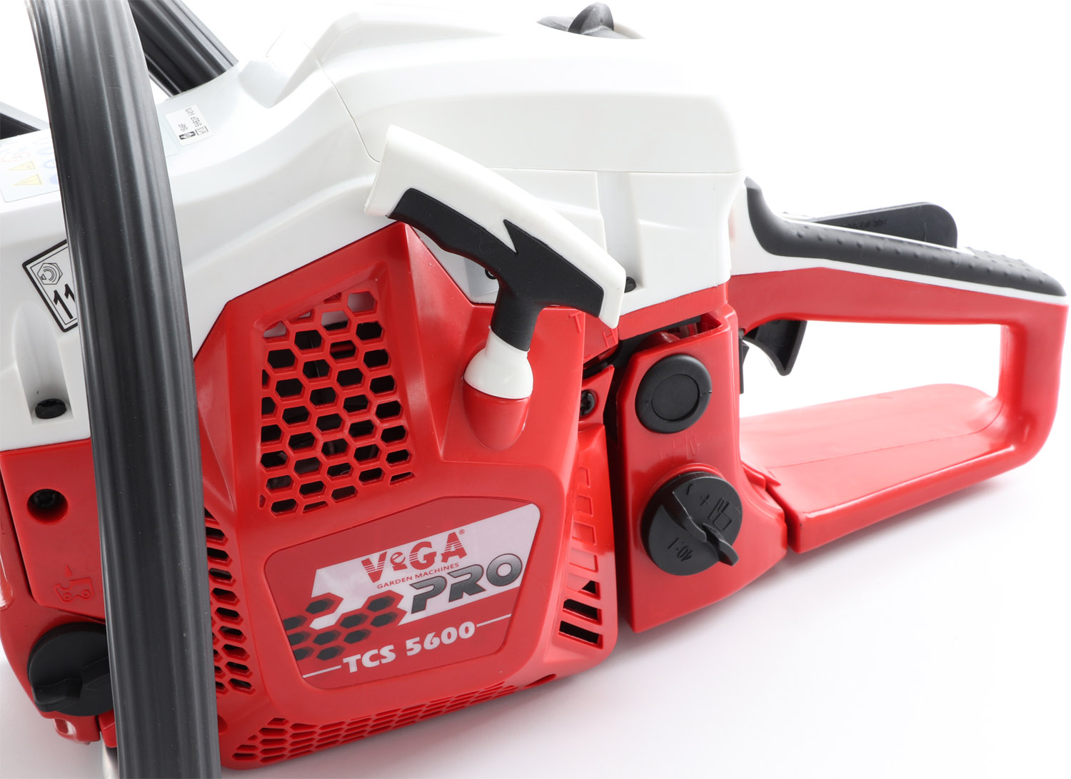 Motorové pily VeGA TCS Professional nabízí vysokou kvalitu všem náročným uživatelům, kteří očekávají profesionální řetězové pily na úrovni třídy farmer. Skříň motoru je vyrobena ze slitiny magnezia, což dává váhovou výhodu až 0,5-1kg kg oproti konkurenci. Dále slitina magnezia lépe odvádí teplo, než hliníkové tělo, tudíž nehrozí „utavení“ stroje. Výborné vyvážení pil VeGA TCS Professional a účinný antivibrační systém společně s komponenty od těch nejlepších světových dodavatelů umocňují exelentní řadu řetězových pil. Řetězová lišta a řetěz jsou od americké společnosti OREGON, japonské karburátory Walbro a svíčky NGK.