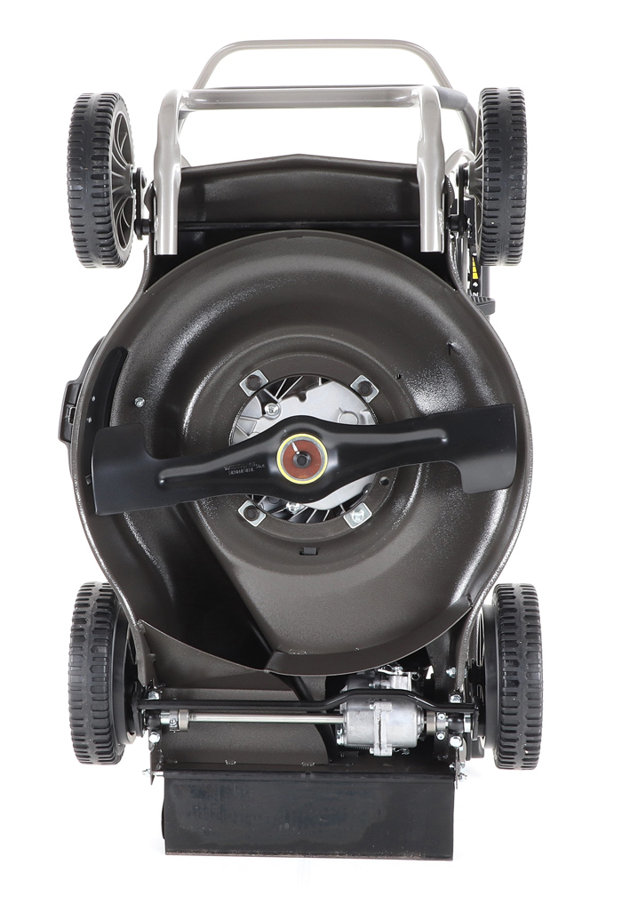 Novinkou sekačky je funkce tzv. "CHYTRÉ ŘEŠENÍ", sekačku lze pro ekonomické uskladnění, snadné čištění, servisování otočit a postavit na zadní speciální patky šasí, tímto se snadno dostanete na spodní část žacího ústrojí, uložení náprav a převodovku.