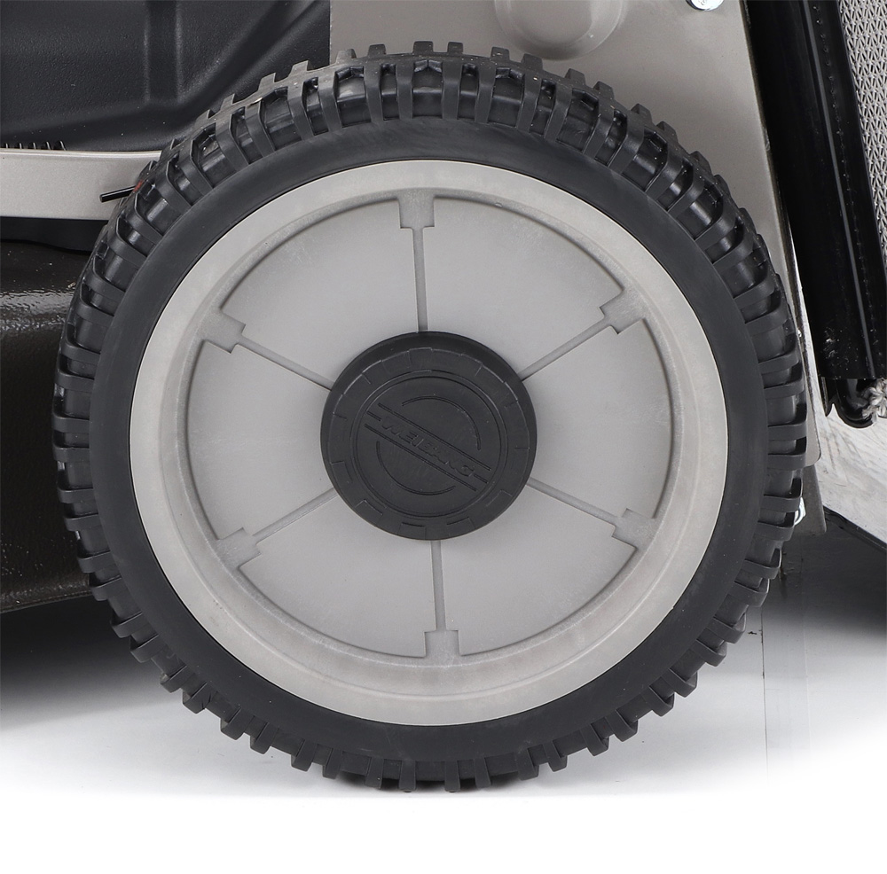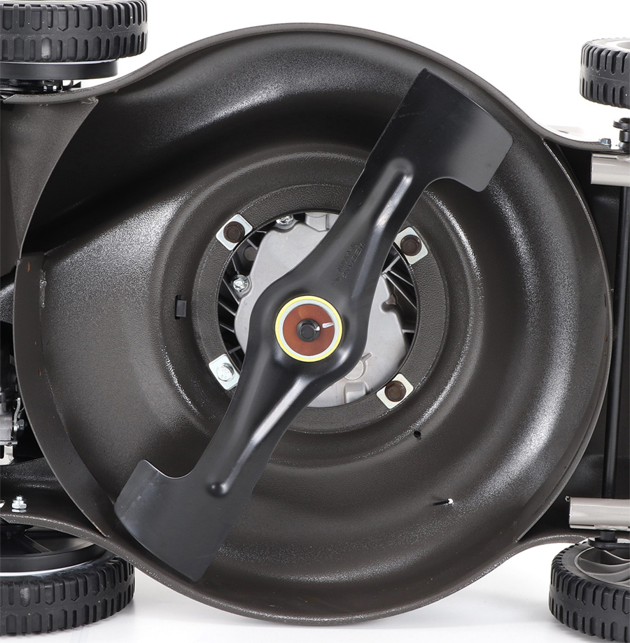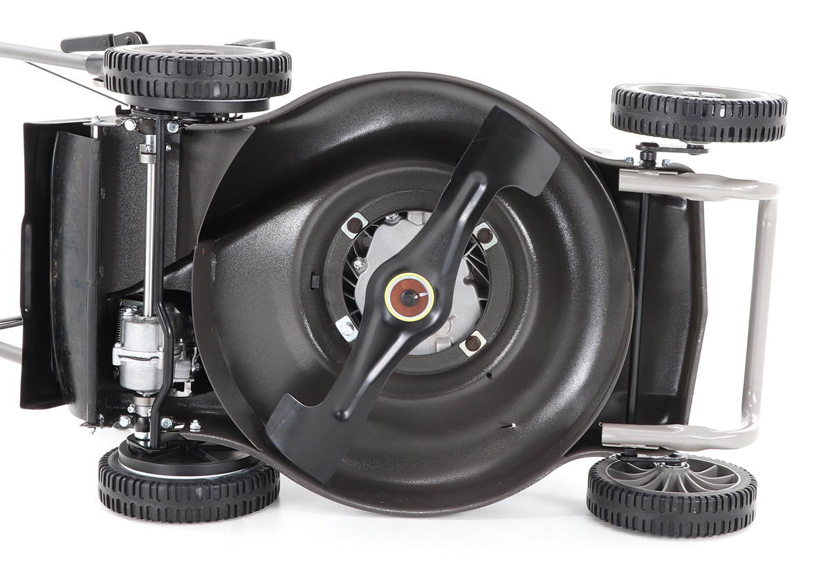 Pogumovaná sendvičová kola jsou uložena v oboustranných kuličkových ložiscích, centrální nastavení výšky sečení je u této značky samozřejmostí. Velkým nadstandardem u této sekačky je použita speciální třecí spojka na noži sekačky pod unášečem, která je schopna prokluzu nože při naražení do pevné překážky. Tato funkce může eliminovat škody na sekačce způsobené nárazem nože do překážky. Ergonomická rukojeť s ovládacími prvky otáček motoru a speciální povlak na obvodu sběracího koše, který stimuluje proud vzduchu, aby se neprášilo na obsluhu.