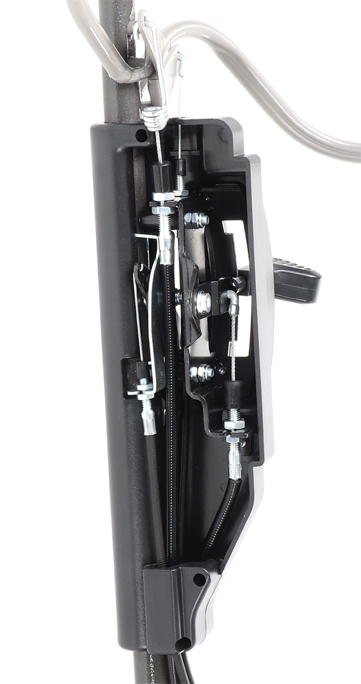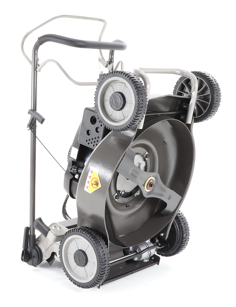 Novinkou sekačky je funkce tzv. "CHYTRÉ ŘEŠENÍ", sekačku lze pro ekonomické uskladnění, snadné čištění, servisování otočit a postavit na zadní speciální patky šasí, tímto se snadno dostanete na spodní část žacího ústrojí, uložení náprav a převodovku.