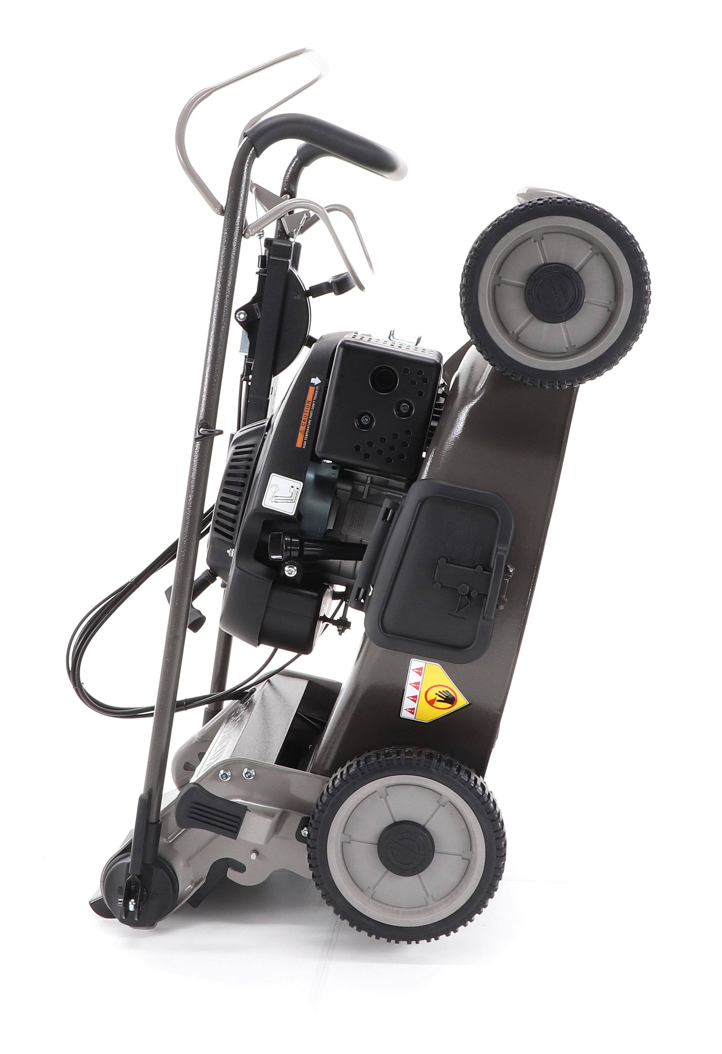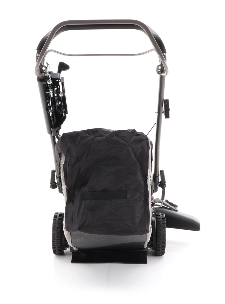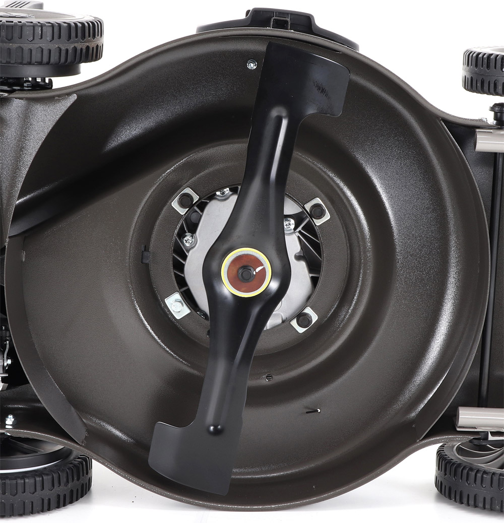 Pogumovaná sendvičová kola jsou uložena v oboustranných kuličkových ložiscích, centrální nastavení výšky sečení je u této značky samozřejmostí. Velkým nadstandardem u této sekačky je použita speciální třecí spojka na noži sekačky pod unášečem, která je schopna prokluzu nože při naražení do pevné překážky. Tato funkce může eliminovat škody na sekačce způsobené nárazem nože do překážky. Ergonomická rukojeť s ovládacími prvky otáček motoru a speciální povlak na obvodu sběracího koše, který stimuluje proud vzduchu, aby se neprášilo na obsluhu.