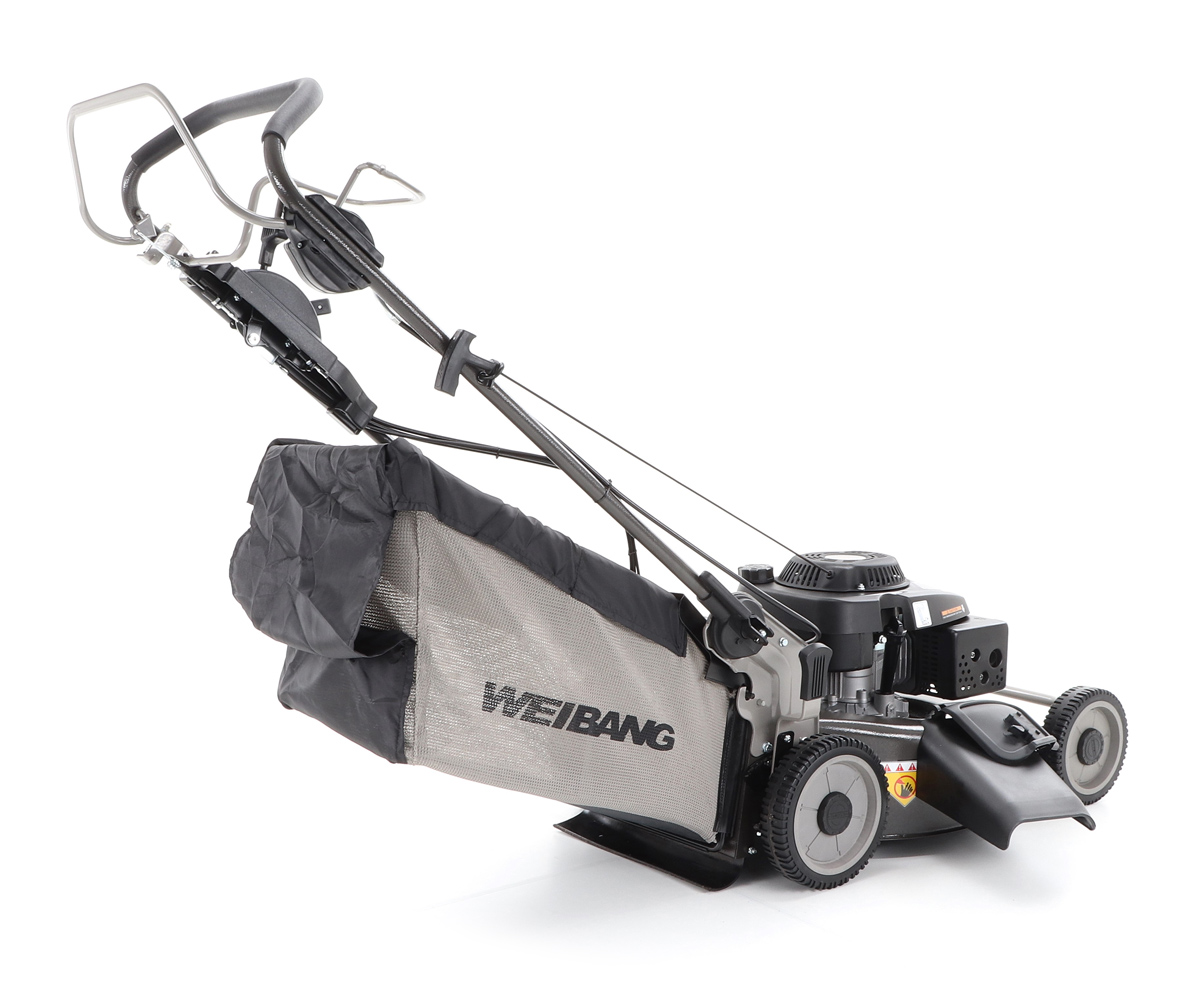 Dále je tato sekačka vybavena pevnými zadními AL koly a sklopnou rukojetí pro snadné uskladnění a přepravu. Masivní žačí nůž s mohutnými vyhazovacími "lopatami - tzv. BIG BLADE" a velký koš spolu se zajímavou cenou dělají z této sekačky WEIBANG WB 537 SCV BBCPRO kvalitního pomocníka s bojem proti zelenému živlu v profesionálním težkém nasazení. Dalším velkým unikátem je motor, který patří mezi to nejlepší co výrobce WEIBANG v této třídě nabízí. Jedná se o profesionální silný motor rozvodu OHV o výkonu 7 HP a vysokým kroutícím momentem 10,5 Nm. Velkou výhodou této sekačky WEIBANG WB 537 SCV BBCPRO je řešení pojezdu za pomocí hřídelového kardanového pohonu. Jedná se o unikátní bezztrátovou technologii pojezdu, bez použití klínového řemene.