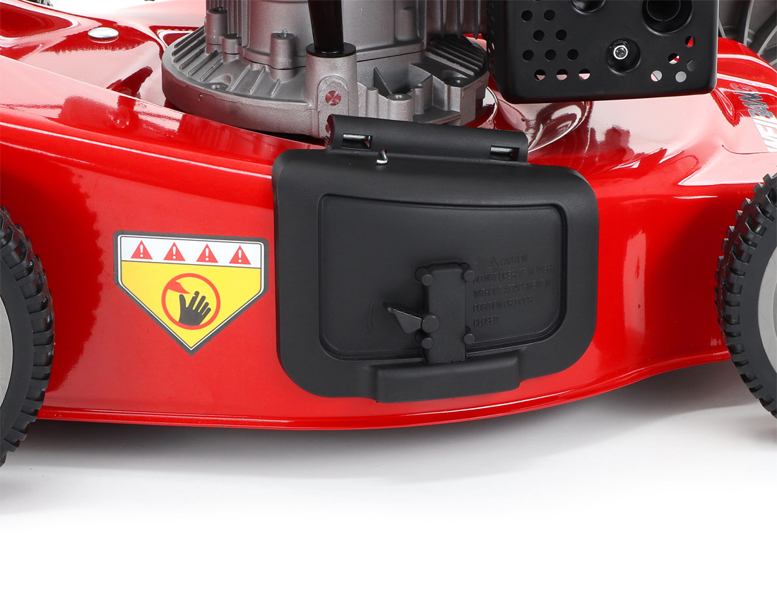 Tato funkce může eliminovat škody na sekačce způsobené nárazem nože do překážky. Ergonomická rukojeť s ovládacími prvky otáček motoru a speciální povlak na obvodu sběracího koše, který stimuluje proud vzduchu, aby se neprášilo na obsluhu.
