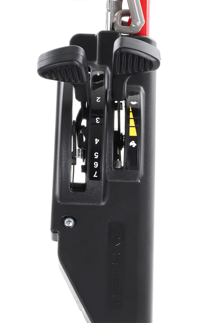 Ergonomicky upravená madla se dají variabilně nastavit do jakékoli výšky za pomocí profesionálních masivních celokovových rychloupínáků.
