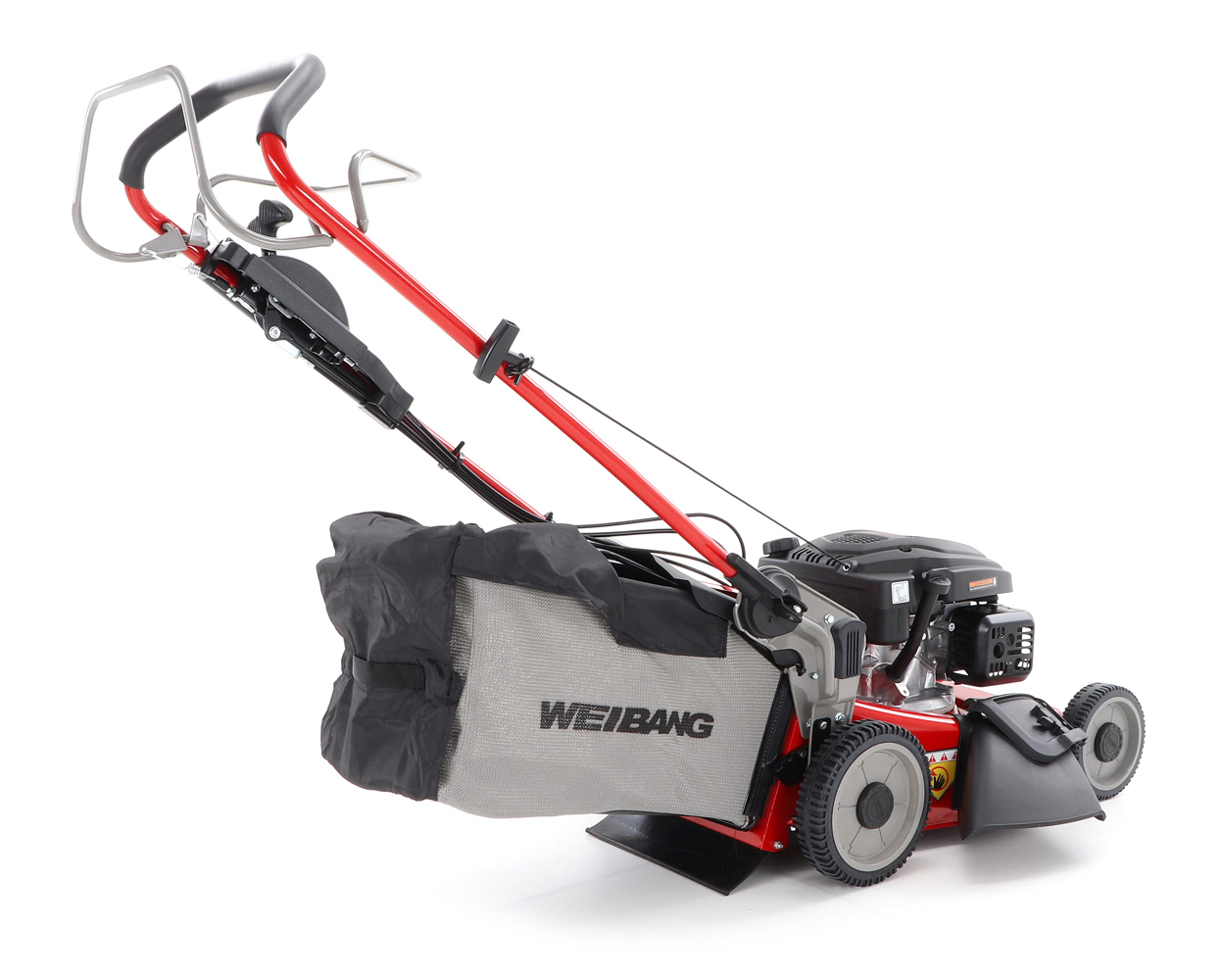 Dále je tato sekačka vybavena pevnými zadními koly a sklopnou rukojetí pro snadné uskladnění a přepravu. Masivní žačí nůž s mohutnými vyhazovacími "lopatami - tzv. BIG BLADE" a velký koš spolu se zajímavou cenou dělají z této sekačky WEIBANG WB 456 SCV 6in1 kvalitního pomocníka s bojem proti zelenému živlu. Dalším velkým unikátem je motor, který patří mezi to nejlepší co WEIBANG v dané třídě nabízí. Jedná se o profeisonální silný motor rozvodu OHV o výkonu 6 HP a vysokým kroutícím momentem 9,5 Nm - 166 ccm.
