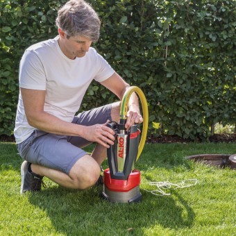 Spojte výhody zahradního a ponorného čerpadla s automatickým ponorným tlakovým čerpadlem AL-KO DIVE 5600/44 Ponorné tlakové čerpadlo DIVE 5600/44 spojuje výhody zahradních a ponorných čerpadel s velkým průtokem a konstantním vysokým tlakem. Čerpání a vyjímání z nádob, (užitková) voda ze studní/šachet/jiných nádob na vodu, provoz postřikovačů trávníků, dodávky komplexních zavlažovacích systémů až po automatické zásobování domácností vodou. Zásobování domácností vodou ve spojení s Hydrocontrolou. Zvláštní výhodou tohoto čerpadla je velký průtok při konstantně vysokém tlaku. Inovativní systém těsnění pro dlouhodobý provoz Keramické těsnění pro ochranu před vysokým tlakem až do 4 barů. Tři přídavná břitová těsnění trvale chrání čerpadlo před vniknutím vody. Dále je zde kanál pro uvolnění těsnicí situace v případě kosmetického úniku. Ponorné tlakové čerpadlo DIVE 5600/44 Automatic je možné použít pro mobilní i stacionární zavlažování díky praktickému integrovanému madlu a 10 m dlouhému napájecímu kabelu a hmotnosti pouze kolem 11 kg. Nekorodující materiály, jako je nerezová ocel použitá na krytu, a bezúdržbové komponenty zaručují dlouhotrvající provoz čerpadla. Před netěsností tlakových hadic chrání vestavěný maloobjemový program. Se svým výkonným 1200 W motorem dosahuje 4stupňový pohon čerpadla průtoku až 5 600 l/h, takže čerpání vody je hotovo během okamžiku. Je určen pro hloubky ponoru až 7 m a zvládne dopravní výšku až 44 m. Maximální průměr zrna je 0,5 mm. Maximální průměr zrna je 0,5 mm. K výstupu čerpadla lze snadno připojit 1,5palcovou hadici (47,8 mm). Instalaci 1" "plovoucího odsávání" pro čerpání vody z čistého prostoru cisterny lze provést bez nářadí. Čerpadlo se používá v poloze vleže. Speciálně tvarované rukojeti účinně zabraňují odvalování čerpadla. Poznámka: Ponorné čerpadlo není vhodné pro pitnou vodu, ale pouze pro užitkovou vodu a chlorovanou vodu (bazénovou vodu) do 35 °C. Rovněž není vhodné pro použití ve slané vodě, vodě s agresivními chemikáliemi nebo vodě obsahující písek. Kupte si ponorné čerpadlo AL-KO DIVE 5600/44 Comfort Kupte si ponorné tlakové čerpadlo DIVE 5600/44 nyní v našem internetovém obchodě nebo u některého z našich specializovaných prodejců. Pokud hledáte alternativu k tomuto čerpadlu, doporučujeme ponorné tlakové čerpadlo DIVE 6500/34 (č. položky 113884)
