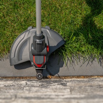 S pouze 2,4 kg vč. baterie a ergonomicky nastavitelná přídavná rukojeť je tento vyžínač vysoce mobilním a snadno ovladatelným pomocníkem pro každého majitele zahrady. Flexibilní, otočná hlava nitě se šířkou záběru 25 cm a lištou na ochranu rostlin zajišťuje přesné zastřihávání na okraji trávníku, pod keři a na stěnách. Díky funkci automatického zkracování struny můžete snadno nastavit optimální délku během práce poklepáním hlavy zastřihovače o zem. A výškově nastavitelnou hliníkovou teleskopickou násadu lze individuálně nastavit tak, aby vyhovovala vaší výšce. Skládací kolečko vám pomůže s čistým ořezáváním hran.