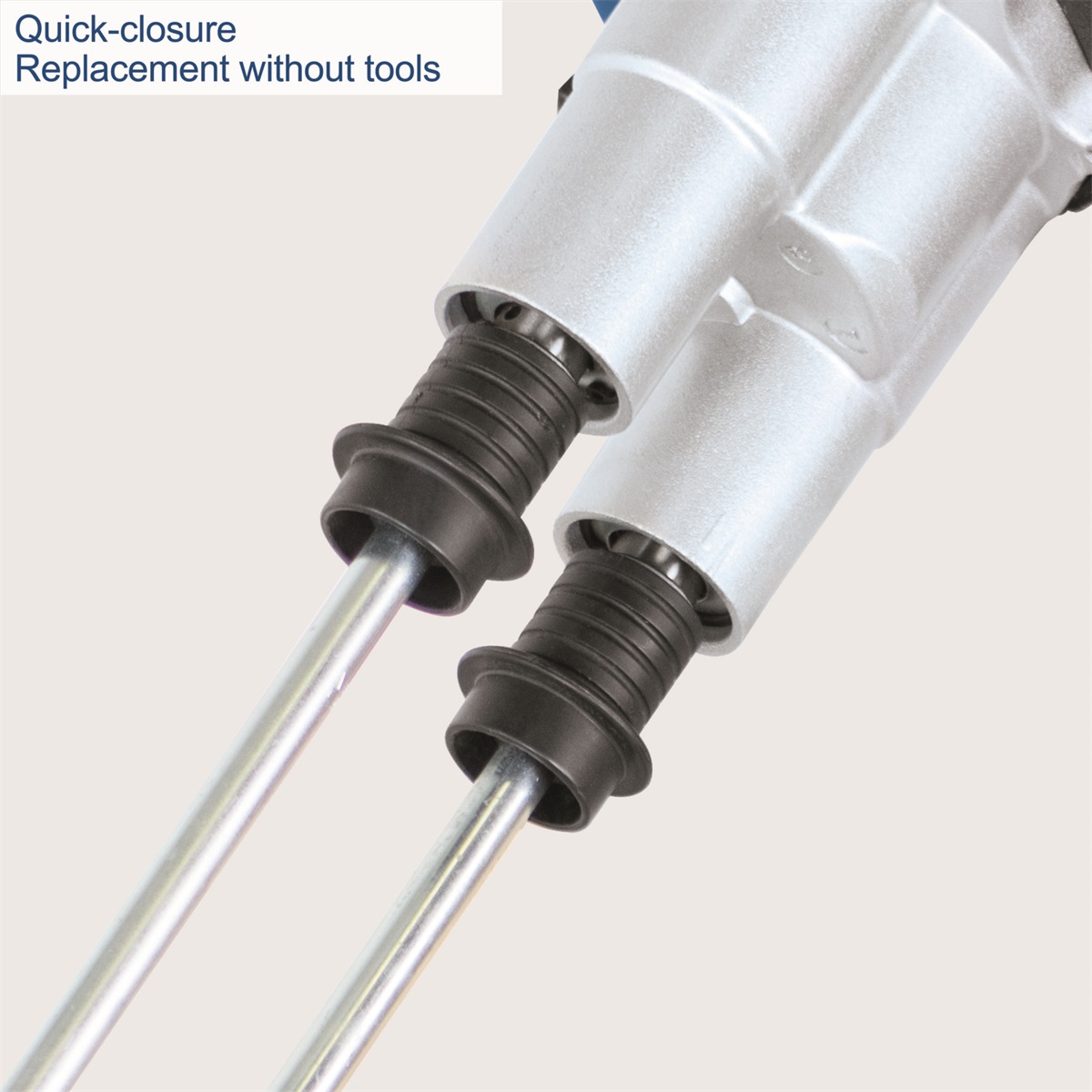 Dvoumetlové míchadlo Scheppach PM 1800 D je díky svojí konstrukci určeno jak na míchání běžných stavebních materiálů, tak i na těžké míchání velmi viskózních směsí až do hmotnosti 90 kg. Poradí si tak s materiály, jako je malta, beton, sádra, nátěrové hmoty, omítky, spárovací hmoty, lepidla, barvy a podobně. Skvěle ho využijí nejenom běžní hobby uživatelé, ale i řemeslníci z řad obkladačů, podlahářů, malířů nebo zedníků. Základem jsou protiběžné míchací metly, které důkladně a efektivně rozmíchají jakoukoliv směs. Díky protiběžnému směru navíc nemají snahu otáčet nádobou, takže práce je velmi rychlá a pohodlná. Každý materiál potřebuje jiné otáčky, proto je zde dvourychlostní převodovka a navíc elektronická regulace rychlosti. První stupeň má vysoký točivý moment a je vhodný na tuhé a viskózní materiály, druhý stupeň je rychlejší a vhodný na řidší míchaný materiál. Míchadlo má silný motor 1800 W se soft startem, velmi příjemné měkčené ergonomické rukojeti ve tvaru D a bezpečnostní spínač. Chytrý a robustní systém rychloupínání je důležitý pro účinný přenos sil a rovněž umožňuje snadnou výměnu nástroje. Součástí dodávky jsou dvě kvalitní spirálové míchací metly o celkovém průměru 220 mm.Podmínkou výrobce na uplatnnění prodloužené záruky 48 měsíců je placený servis stroje ve 24 měsíci od zakoupení v autorizovaném servisu Scheppach.