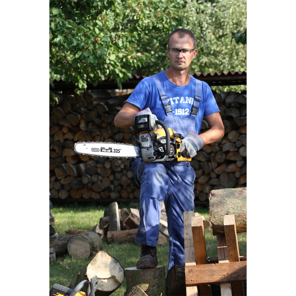 robustní konstrukce a vysoký výkon pily jsou vhodné i na řezání velkých kmenů, prořezávání lesního porostu, sadu nebo na přípravu palivového dřeva na topnou sezónu