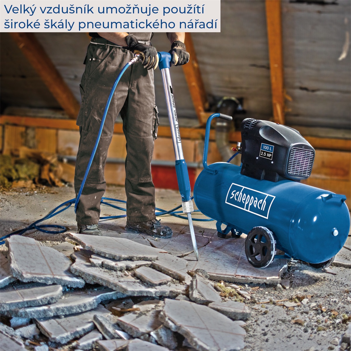 Scheppach HC 120 dc - olejový dvouválcový kompresor 10 bar se vzdušníkem 100 l