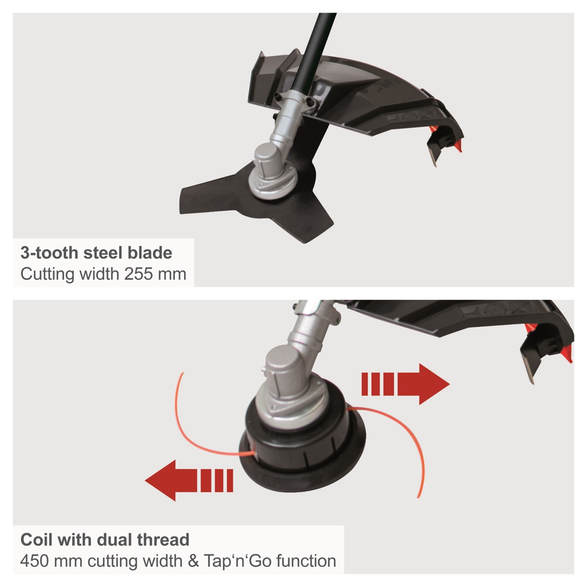 Silný benzínový křovinořez Scheppach BCH 5200 PB je poctivě vyrobený stroj ideální i na náročné práce kolem domu a zahrady. Díky možnosti zvolit žací hlavu s velkým záběrem nebo ostrý třízubý nůž, můžete lehce pokosit vysokou trávu na louce nebo zlikvidovat drobné nálety v lese či sadu. Motor o objemu 52 cm3 dává křovinořezu stále dostatek výkonu a jeho antivibrační uložení významně tlumí nepříjemné vibrace. Je vyroben technologií „Full Crank“, kdy má, stejně jako profesionální stroje, klikovou hřídel uloženou ve dvou ložiscích. To mu dává výrazně delší životnost. Široká antivibrační řídítka zaručí snadné vedení a ovládání stroje. Moderní karburátor bude vždy spolehlivě dodávat benzín i při práci ve velkých náklonech, například když pracujete v příkrém svahu. Další výbava zahrnuje dělenou hřídel pro snadné skladování i transport a pohodlný dvouramenný popruh.