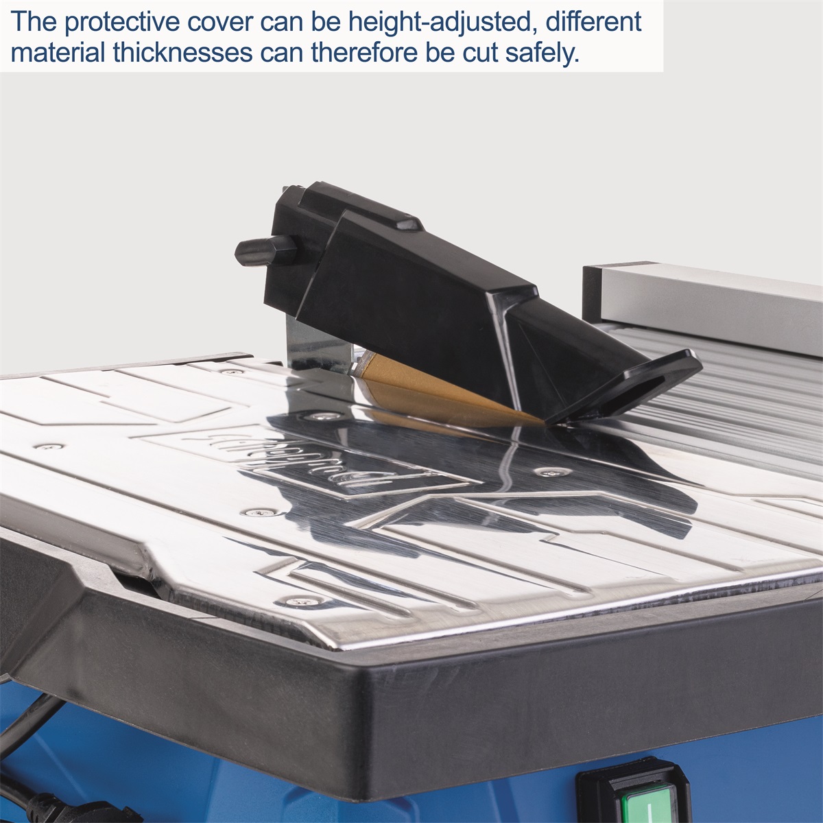 Moderní řezačka na dlažbu Scheppach WTS 2000 je výborným pomocníkem všech řemeslníků nebo kutilů pracujících často s obklady či dlažbou a je pro ně důležitá mobilita nebo potřeba kompaktního a lehkého stroje. Zásadní výhodou je koncepce s posuvným stolkem, díky čemuž nejsou problémy řezy o délce až 450 mm a výšce 32 mm. Stolek s přesnou milimetrovou stupnicí obsahuje i úhlové pravítko s integrovanou stupnicí pro řezání pod úhly a rovněž praktický posuvný boční doraz. Prémiový diamantový kotouč je, na rozdíl od běžných konstrukcí, pevně usazen, takže dlouhé řezy jsou velice přesné. Podle tloušťky materiálu jde výškově nastavit rovněž kryt kotouče. Silný motor 900 W s tepelnou ochranou si hravě poradí s řezáním dlažby, obkladaček, mramoru apod. Robustní podstavec obsahuje jímku na vodu pro chlazení kotouče a bezprašnou práci, integrovanou rukojeť s gumovým madlem, držáky na boční doraz a úhlové pravítko pro ochranu při transportu, gumové nožičky a otvory pro přidělání k pracovní desce. Stroj je vybaven nejmodernější bezpečnostní ochranou a je certifikovaný německou společností TÜV i pro dlouhodobé používání.Podmínkou výrobce na uplatnnění prodloužené záruky 48 měsíců je placený servis stroje ve 24 měsíci od zakoupení v autorizovaném servisu Scheppach.