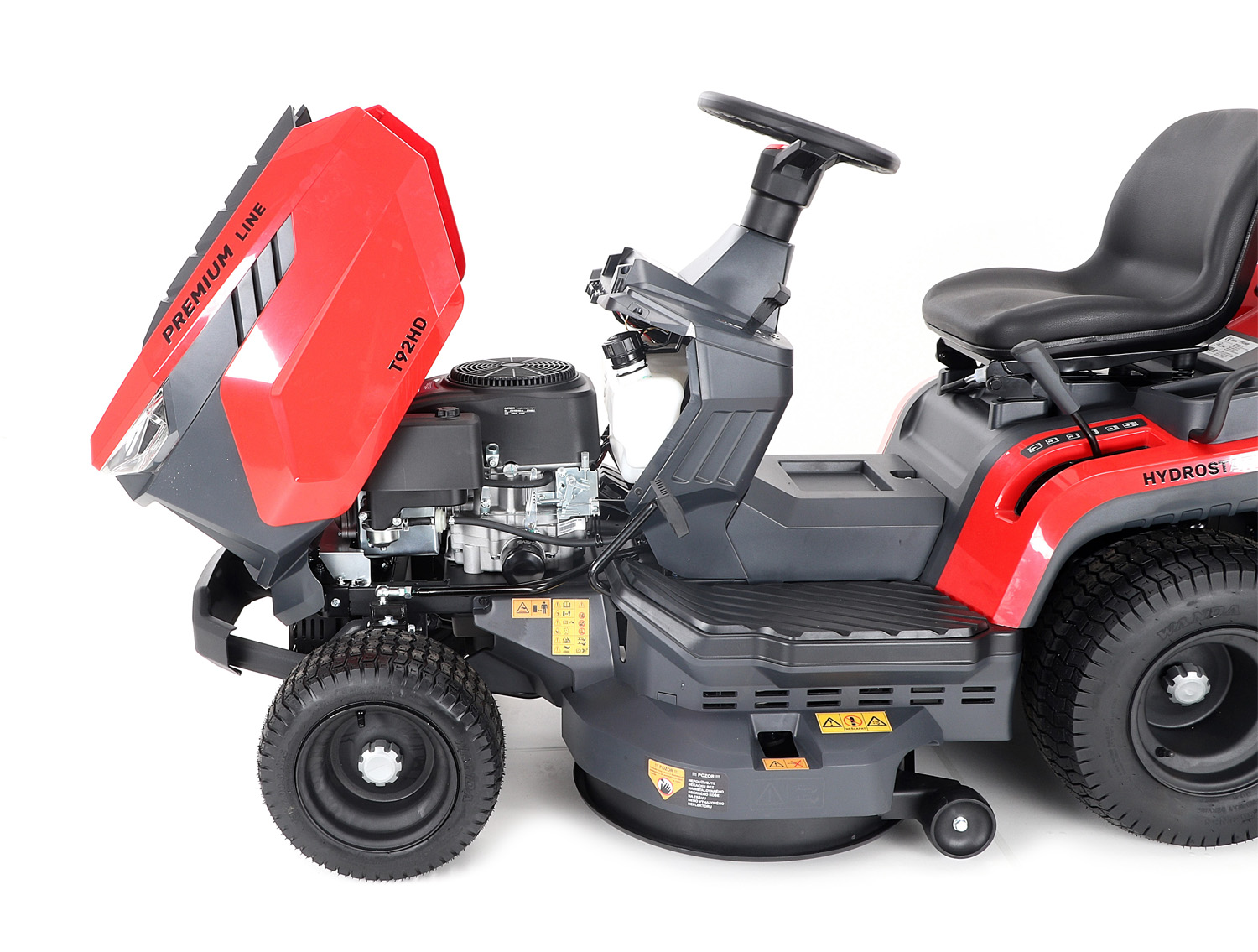 Hydrostatická převodovka zajišťuje plynulý a komfortní pohyb i v náročném terénu. Díky velkému sběrnému koši o objemu 280 litrů se nemusíte obávat častého vysypávání posekané trávy. Přední kola o velikosti 15“ x 7.00 “- 8 a zadní kola o velikosti 18“ x 10.00“- 9 spolu s dvojicí anti-skalpovacích kol zajišťují stabilitu a ochranu vašeho trávníku před poškozením.