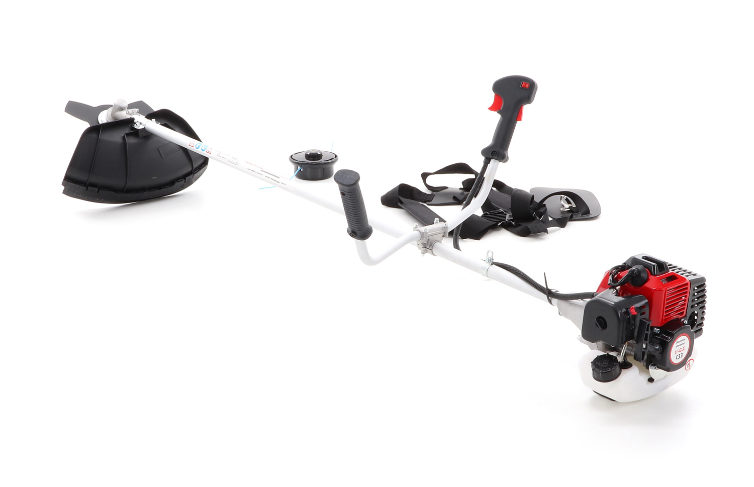 • dvoustrunná žací hlava s kovovým rtrnem umožňuje automatické nastavení délky struny lehkým úhozem o zem