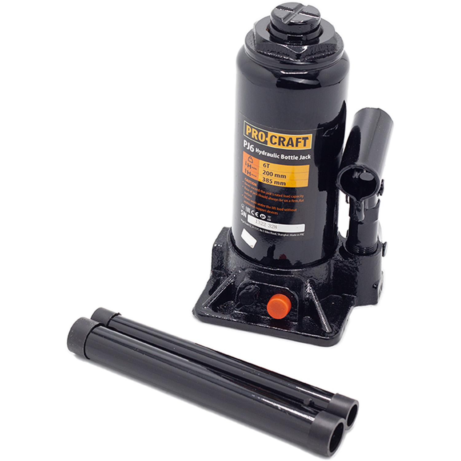Hydraulický zvedák Procraft PJ6 je určen k zdvihání automobilů, ve stavebnictví a průmyslu. Konstrukce je z kvalitní litiny, vybavena bezpečnostním ventilem. Zvedák má zdvihací kapacitu 6 tun a zdvihový rozsah od 200 mm do 385 mm a vybaven šroubovací patkou. Pohodlné zdvihání a plynulé spouštění břemen usnadňují práci. Součástí dodávky je tyč. Balení karton.