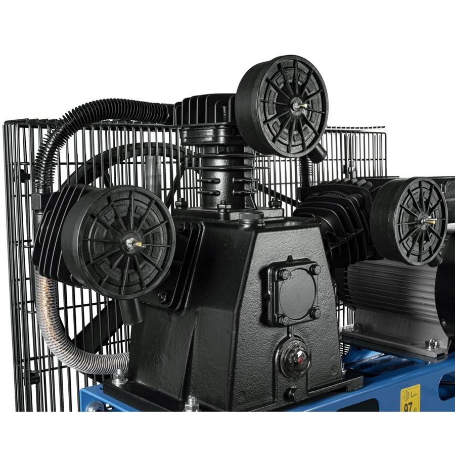 Vybavení: 2 manometry, 2 výstupy stlačeného vzduchu, tlakový spínač, redukční ventil, pojistný přetlakový ventil, zpětný ventil, olejoznak, vzduchové filtry (3), jistič motoru, ochranný (mřížový) kryt řemenu.