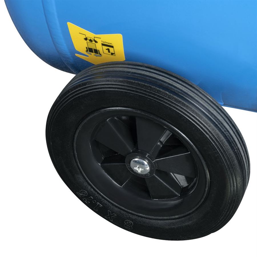 Tlaková nádoba: 100 l, vypouštěcí ventil kondenzátu, podstavec s antivibračními patkami (2), transportní rukojeť, celoplastová kola pro snadné přejíždění.