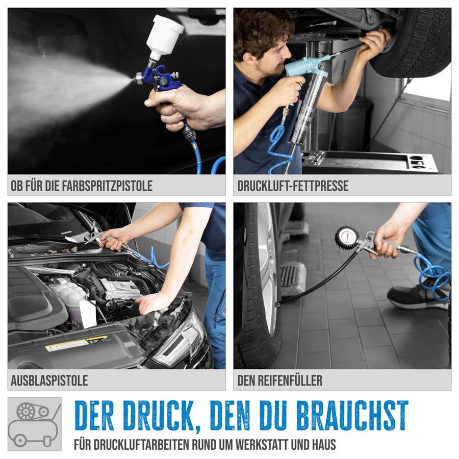 Výkonný kompresor, určený k výrobě stlačeného vzduchu v domácích i servisních (řemeslnických) dílnách.