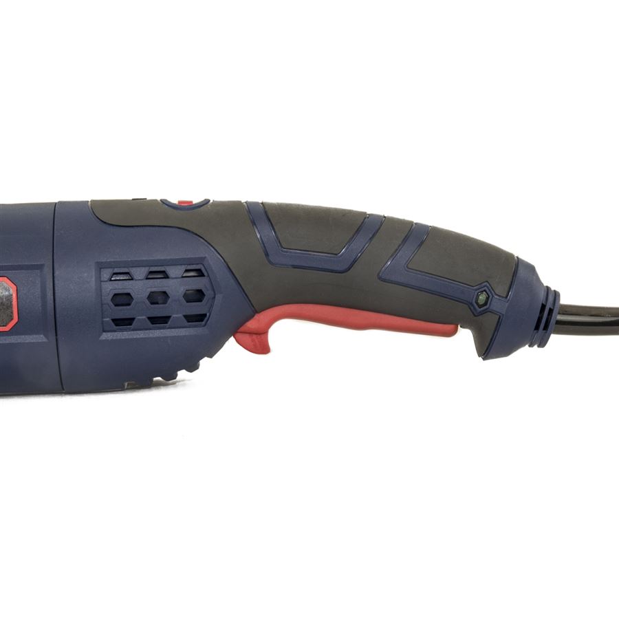 • 7-stupňová předvolba otáček (-> rozsah: 3.000 - 11.000 ot./min.), polohovatelná přídavná rukojeť (-> 3 x 90°), aretace upínacího vřetena pro snadnou/rychlou výměnu kotouče.