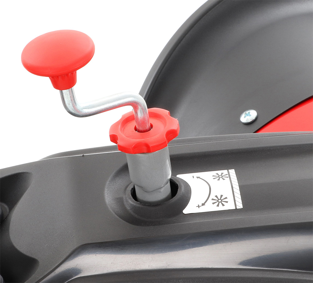 Řídítka jsou výškově nastavitelná, pákou pod nimi lze pohodlně nastavit i směr kartáče.