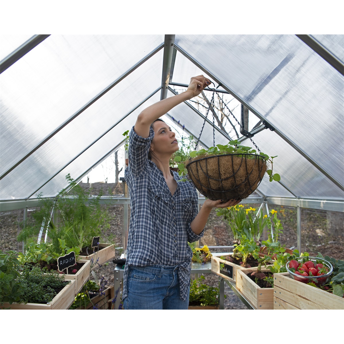 • Prakticky nerozbitné stěny s čirého a střecha ze špičkového dvojitého polykarbonátu Palram udržují ve skleníku optimální teplotu a chrání rostliny před přímým slunečním zářením.