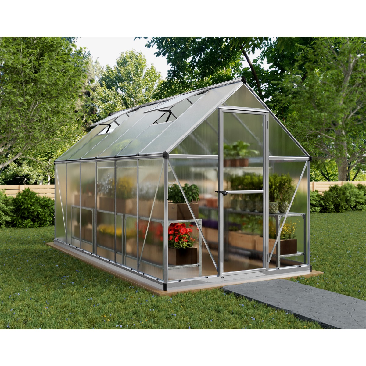 • Prakticky nerozbitné stěny a střecha ze špičkového dvojitého polykarbonátu Palram udržují ve skleníku optimální teplotu a chrání rostliny před přímým slunečním zářením.
