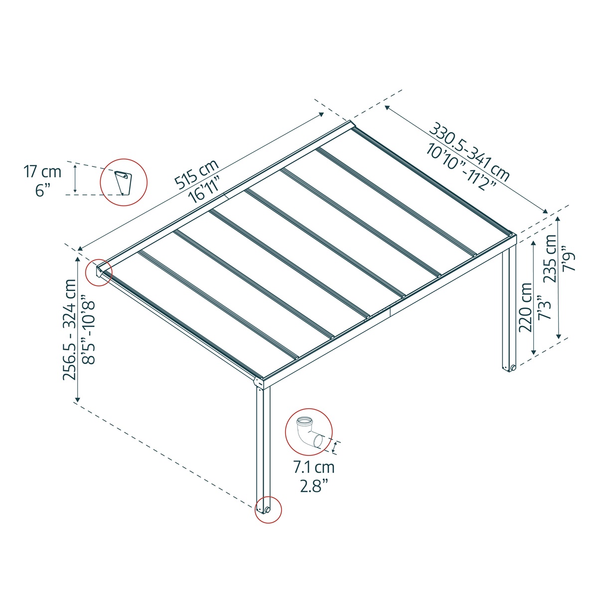 | Rozměry přístřešku (D x Š x V) | 515 x 330-341 x 256-324 cm |