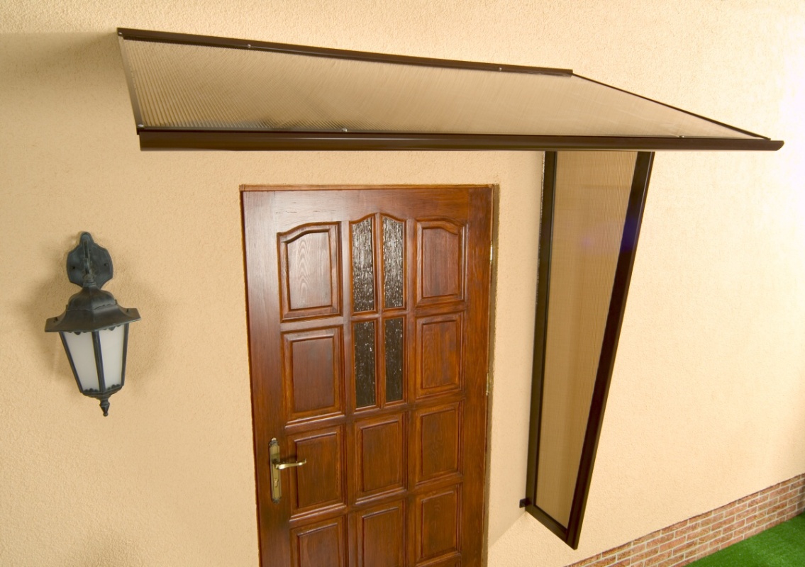 Stříška nad dveře vyrobená z práškově lakovaného hliníku. Na rozdíl od stříšek s plastovou konstrukcí hliníková konstrukce perfektně odolává vlivům počasí, i po letech je pevná a stabilní. V zimě mrazem nekřehne a ani na silném letním slunci nedochází ke změnám barvy. Stříška je zasklená komůrkovým polykarbonátem síly 4,5 mm s oboustranným UV filtrem (značka LEXAN® - vyrobeno v Rakousku). Jde o velmi kvalitní značkový polykarbonát od jednoho z nejlepších světových výrobců.