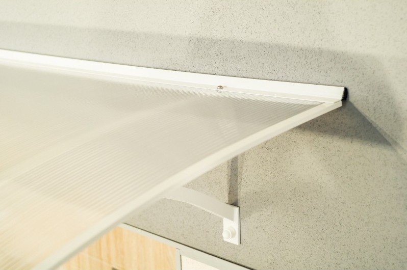 Stříška nad dveře vyrobená z práškově lakovaného hliníku. Na rozdíl od stříšek s plastovou konstrukcí hliníková konstrukce perfektně odolává vlivům počasí, i po letech je pevná a stabilní. V zimě mrazem nekřehne a ani na silném letním slunci nedochází ke změnám barvy. Stříška je zasklená komůrkovým polykarbonátem síly 4,5 mm s oboustranným UV filtrem (značka LEXAN® - vyrobeno v Rakousku). Jde o velmi kvalitní značkový polykarbonát od jednoho z nejlepších světových výrobců.