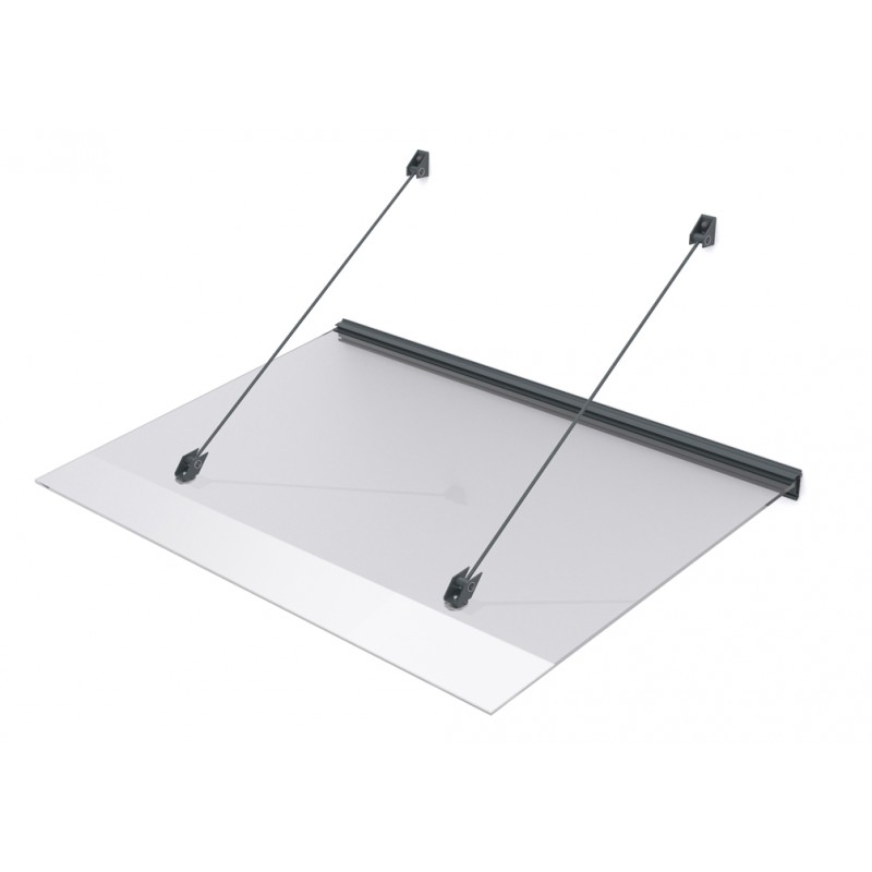 Stříška nad dveře vyrobená z práškově lakovaného hliníku. Na rozdíl od stříšek s plastovou konstrukcí hliníková konstrukce perfektně odolává vlivům počasí, i po letech je pevná a stabilní. V zimě mrazem nekřehne a ani na silném letním slunci nedochází ke změnám barvy. Stříška je zasklená úplně průhledným čirým plexisklem 10 mm.