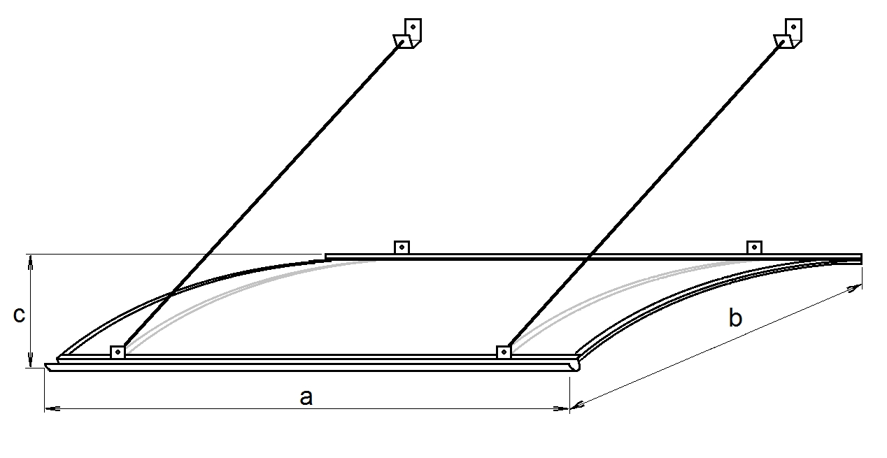 Stříška nad dveře vyrobená z práškově lakovaného hliníku. Na rozdíl od stříšek s plastovou konstrukcí hliníková konstrukce perfektně odolává vlivům počasí, i po letech je pevná a stabilní. V zimě mrazem nekřehne a ani na silném letním slunci nedochází ke změnám barvy. Stříška je zasklená komůrkovým polykarbonátem síly 4,5 mm s oboustranným UV filtrem (značka LEXAN® - vyrobeno v Rakousku). Jde o velmi kvalitní značkový polykarbonát od jednoho z nejlepších světových výrobců.