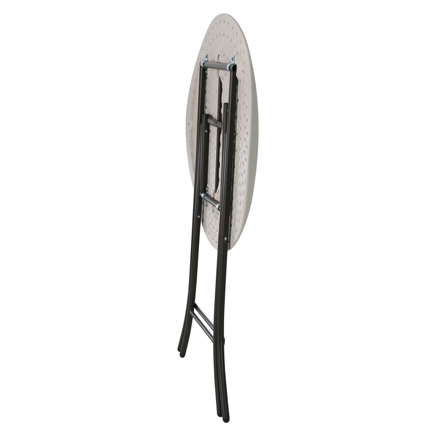 Vysoký barový kulatý stůl vhodný jak pro komerční účely tak do domácnosti, na zahradu, do dílny. Kombinace ocelové nosné kostry a vysoce odolného UV stabilizovaného polyetylenu (HDPE). Odolnost vůči vlivu počasí. Plast na slunci nežloutne ani nekřehne. Stůl je možné jednoduše složit.