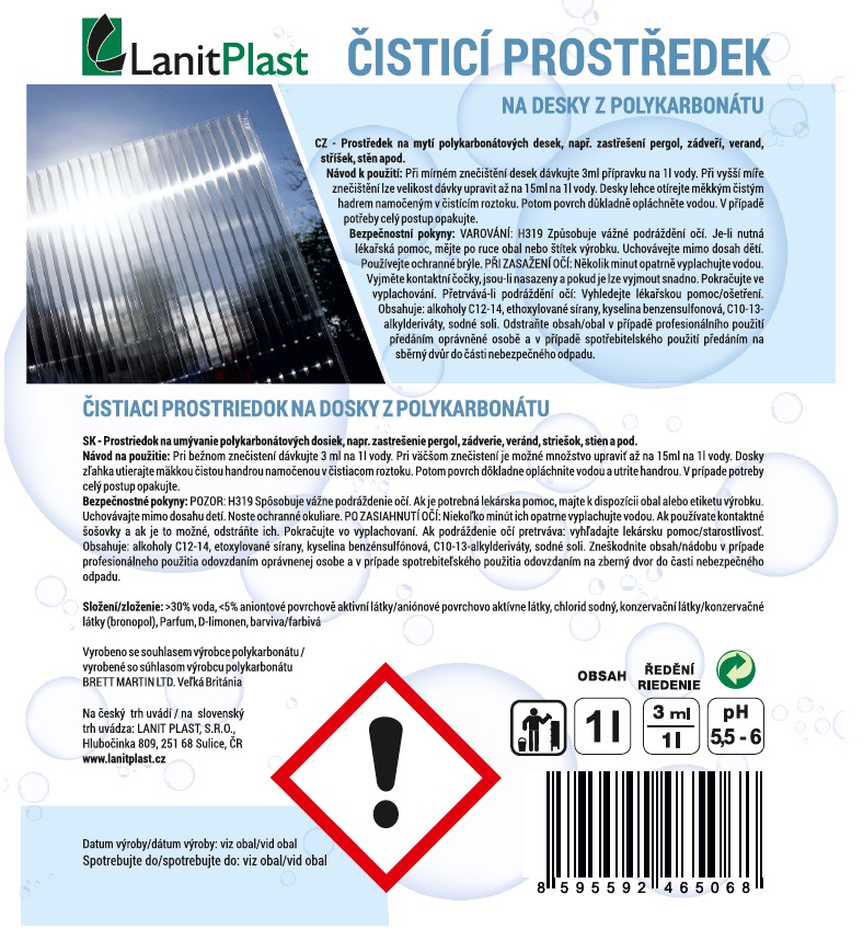 LANIT PLAST, s.r.o. čisticí prostředek LANITPLAST na desky z polykarbonátu LG1603