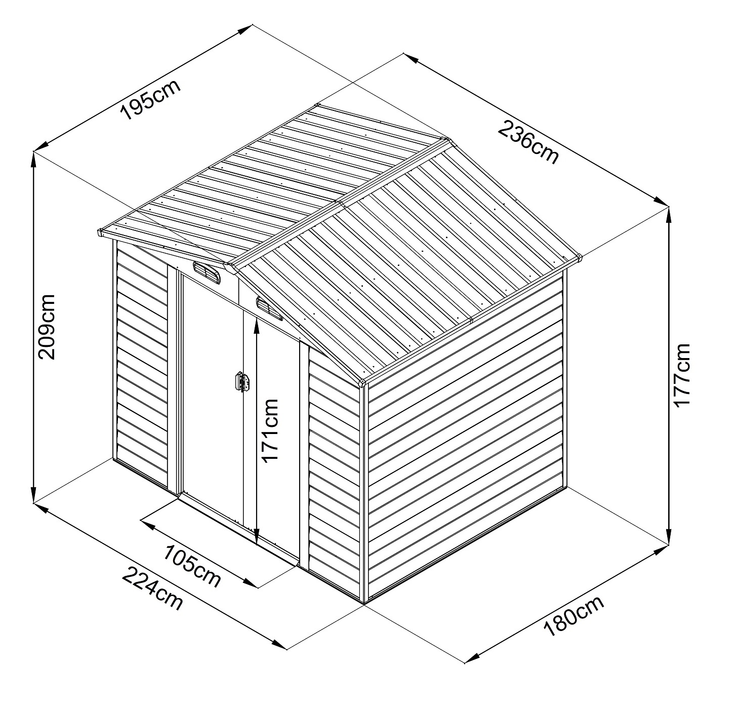 Domek je vyrobený z pozinkovaného vodorovně profilovaného plechu a vzhledově (designově i barevně) se přibližuje dřevěnému domku. Domek je možné použít k uskladnění zahrádkářských, sportovních, bazénových, grilovacích, campingových, motoristických a dalších potřeb. Moderní design, barva, snadná montáž, celoroční použití. Kvalitní materiál s povrchovou úpravou - elektrolyticky pozinkovaný plech s žárově nanesenou barvou. Sedlová střecha, čelní posuvné dveře. Možnost uzamčení (zámek není obsahem dodávky).