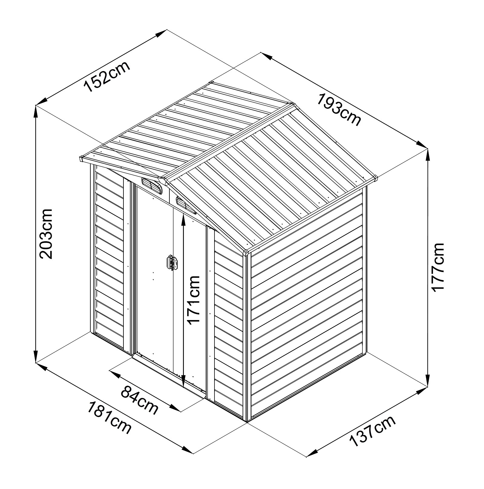 Domek je vyrobený z pozinkovaného vodorovně profilovaného plechu a vzhledově (designově i barevně) se přibližuje dřevěnému domku. Domek je možné použít k uskladnění zahrádkářských, sportovních, bazénových, grilovacích, campingových, motoristických a dalších potřeb. Moderní design, barva, snadná montáž, celoroční použití. Kvalitní materiál s povrchovou úpravou - elektrolyticky pozinkovaný plech s žárově nanesenou barvou. Sedlová střecha, čelní posuvné dveře. Možnost uzamčení (zámek není obsahem dodávky).