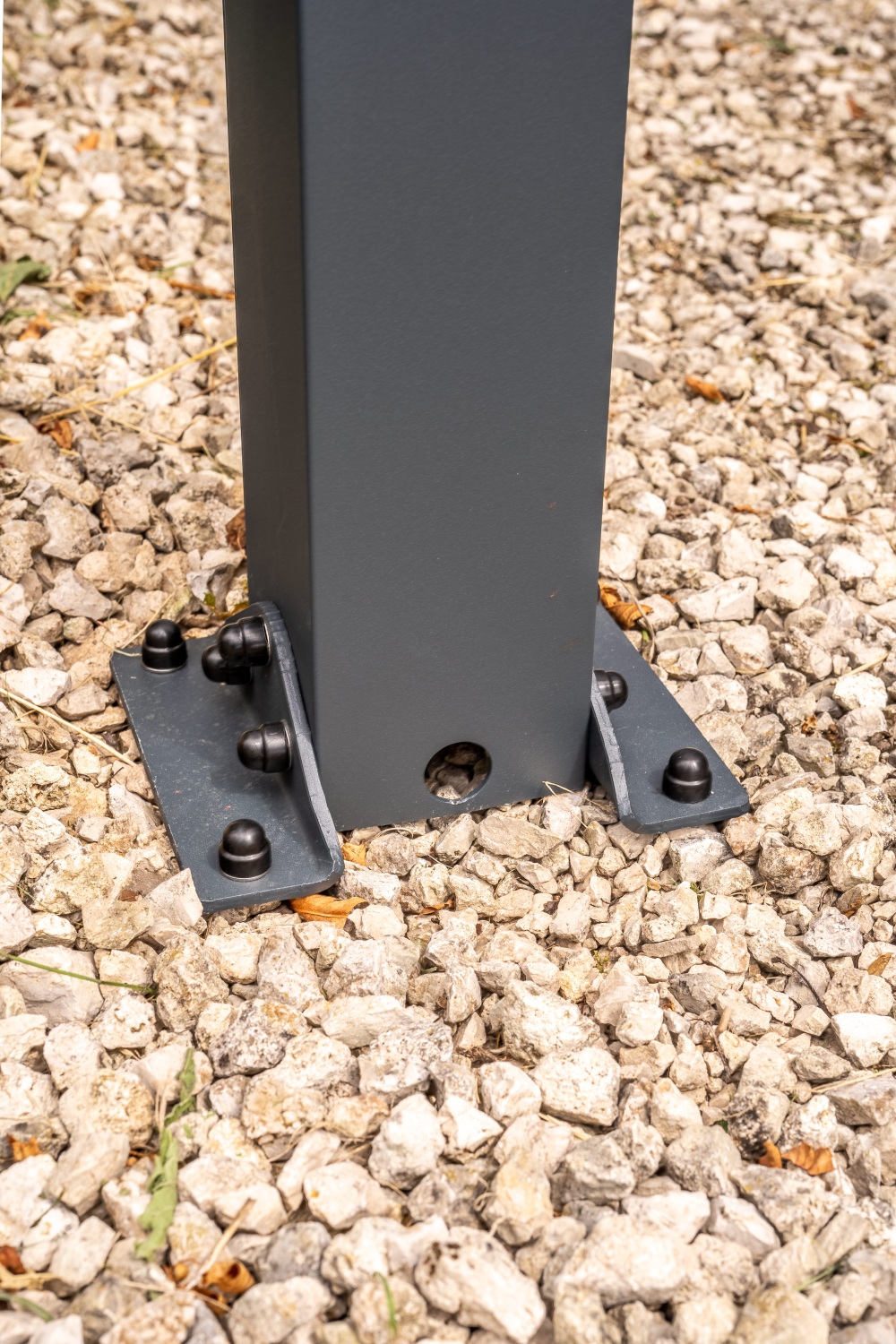 - pozor - patky sloupů je nutné přišroubovat k pevnému základu