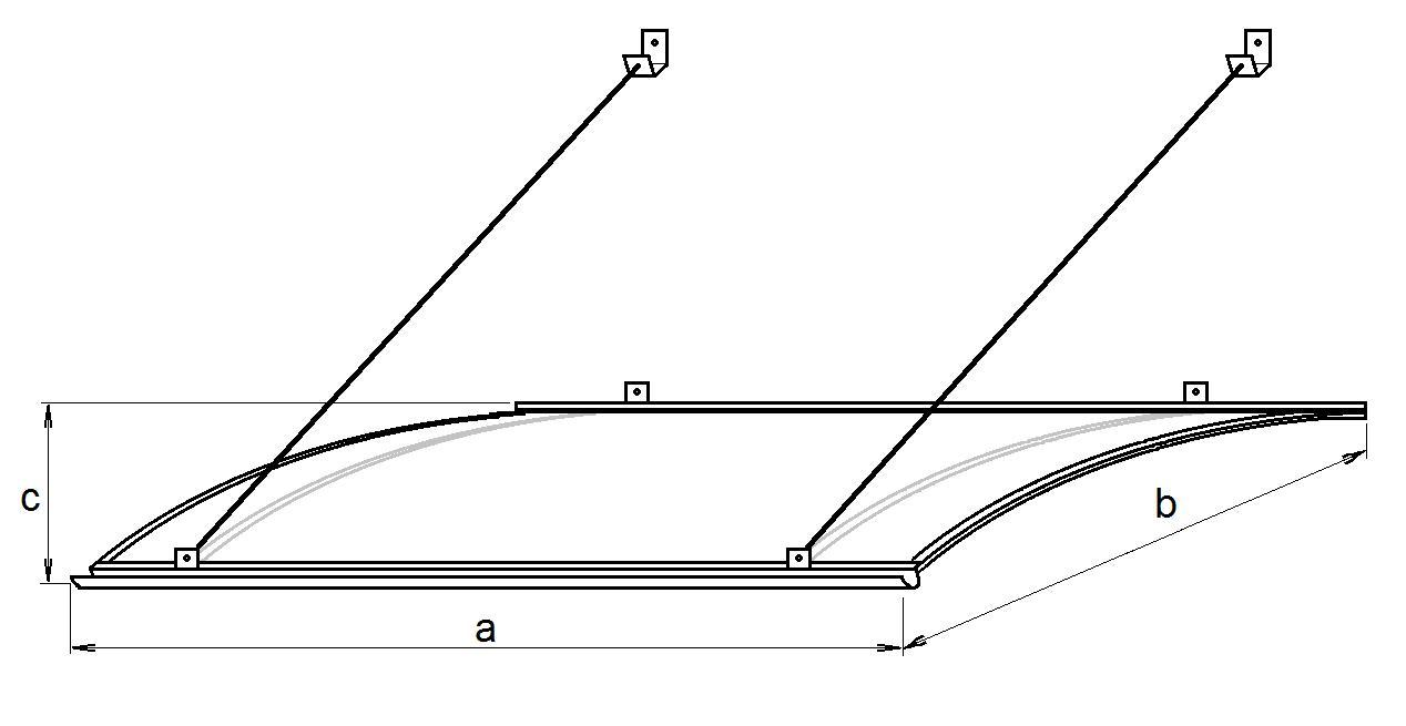 Stříška nad dveře vyrobená z práškově lakovaného hliníku. Na rozdíl od stříšek s plastovou konstrukcí hliníková konstrukce perfektně odolává vlivům počasí, i po letech je pevná a stabilní. V zimě mrazem nekřehne a ani na silném letním slunci nedochází ke změnám barvy. Stříška je zasklená komůrkovým polykarbonátem síly 4,5 mm s oboustranným UV filtrem (značka LEXAN® - vyrobeno v Rakousku). Jde o velmi kvalitní značkový polykarbonát od jednoho z nejlepších světových výrobců.