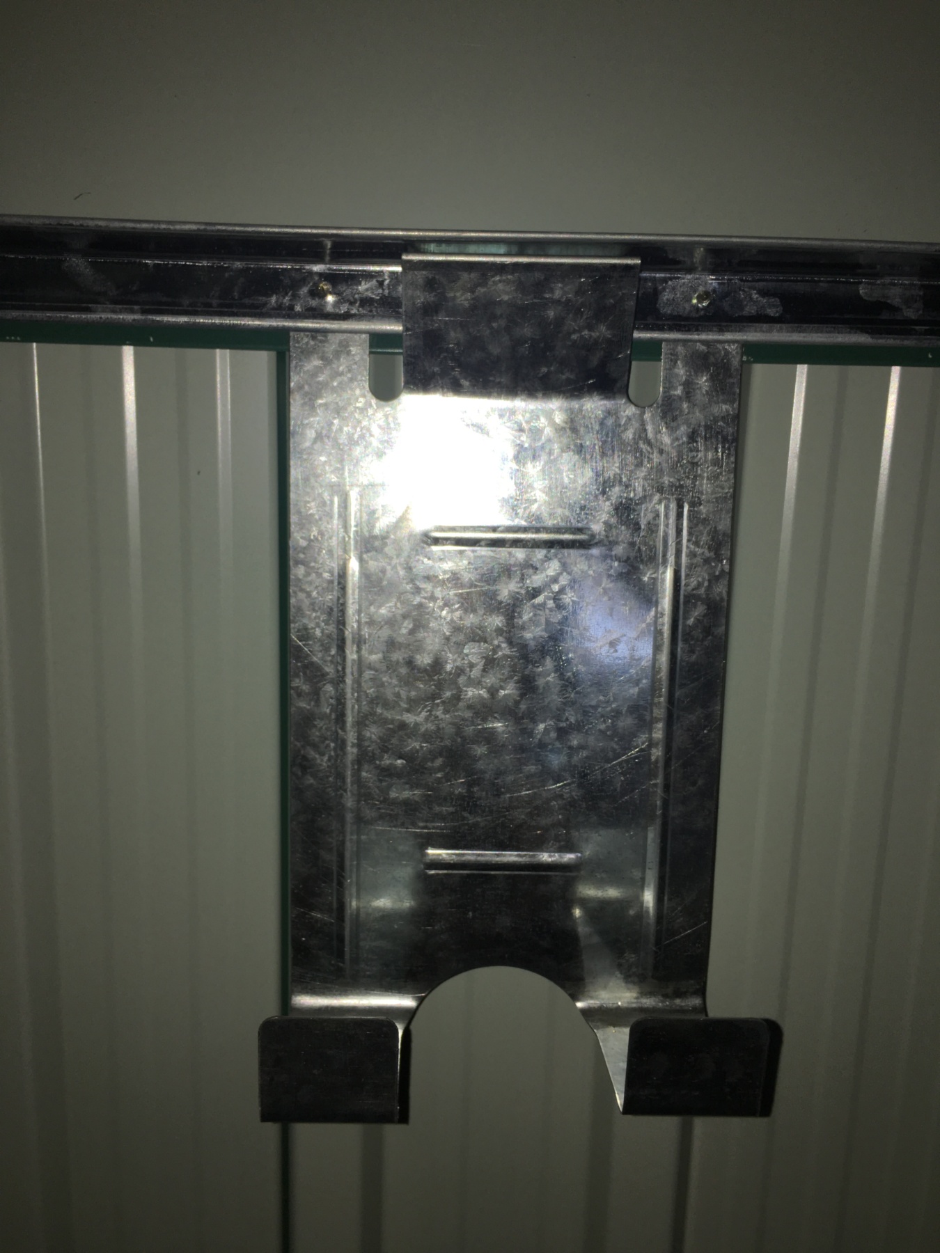 Sada 4 ks větších ocelových háčků na nářadí, rozměry 13 x 6 x 25 cm, kompatibilní pouze s domky MAXTORE.