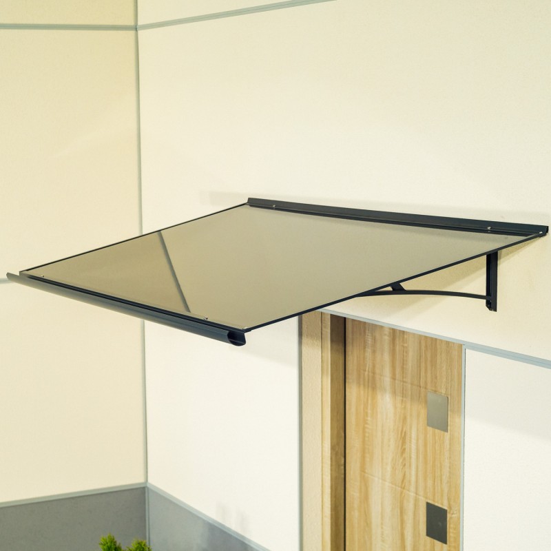 Stříška nad dveře vyrobená z práškově lakovaného hliníku. Na rozdíl od stříšek s plastovou konstrukcí hliníková konstrukce perfektně odolává vlivům počasí, i po letech je pevná a stabilní. V zimě mrazem nekřehne a ani na silném letním slunci nedochází ke změnám barvy. Stříška je zasklená neprůhledným kompozitním panelem se „sendvičovou“ konstrukci AL / PE / AL (dvě hliníkové desky nalepené na centrální desku z polyethylenu).