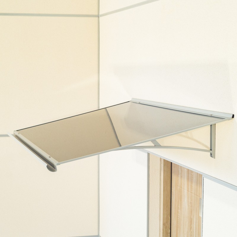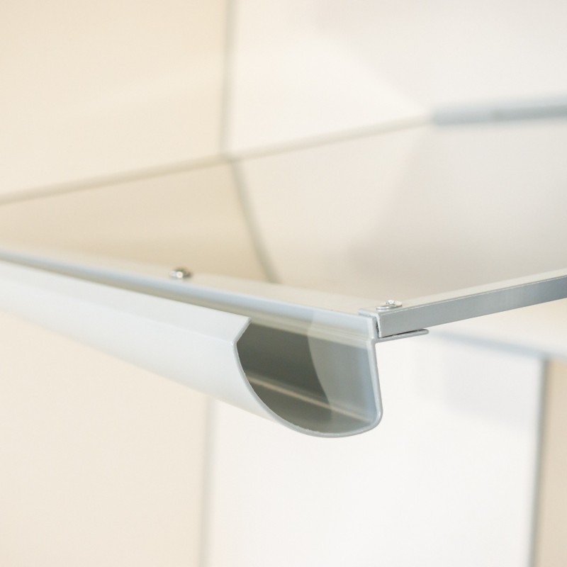 Stříška nad dveře vyrobená z práškově lakovaného hliníku. Na rozdíl od stříšek s plastovou konstrukcí hliníková konstrukce perfektně odolává vlivům počasí, i po letech je pevná a stabilní. V zimě mrazem nekřehne a ani na silném letním slunci nedochází ke změnám barvy. Stříška je zasklená neprůhledným kompozitním panelem se „sendvičovou“ konstrukci AL / PE / AL (dvě hliníkové desky nalepené na centrální desku z polyethylenu).