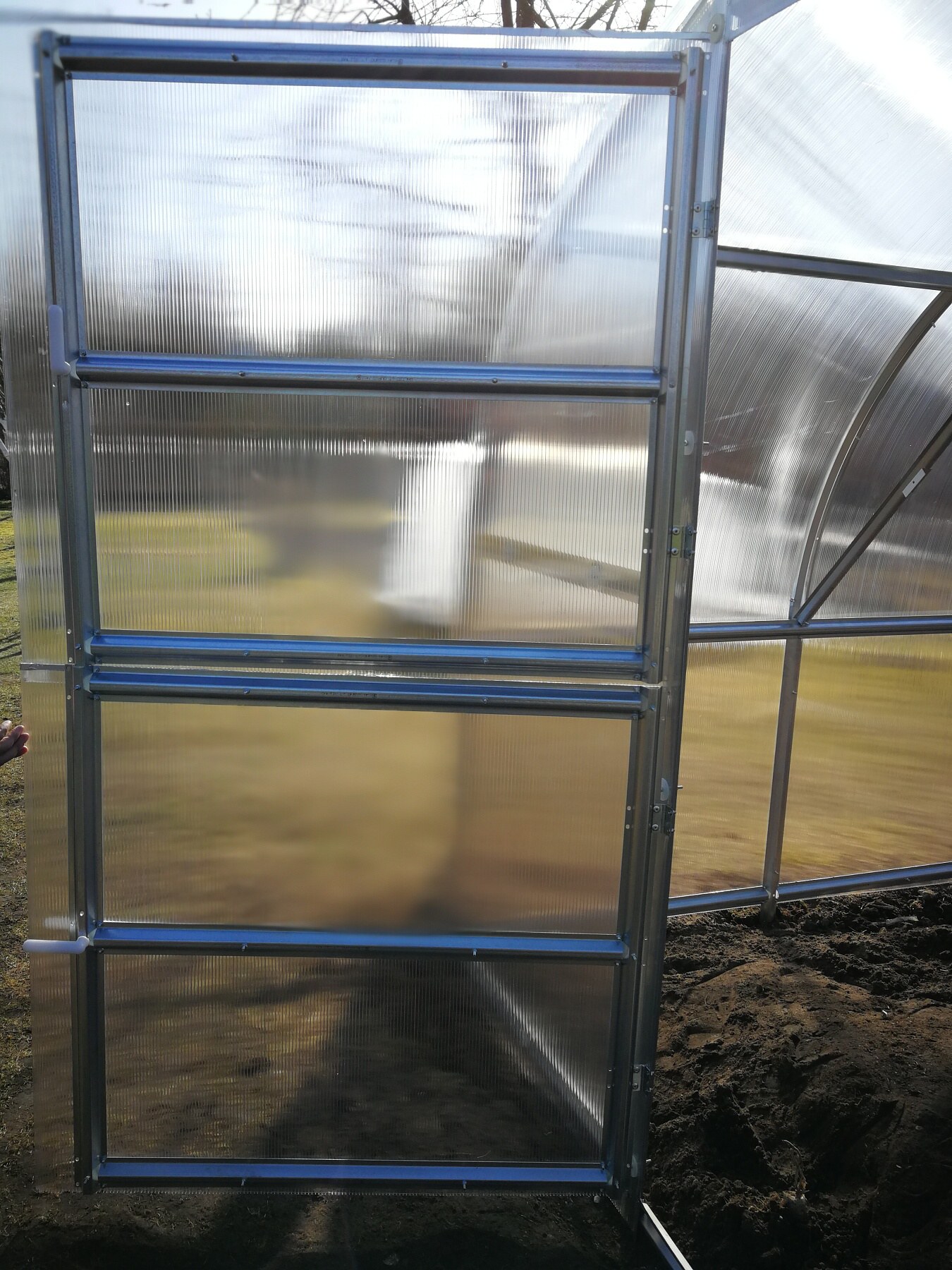 - pozor - u tohoto modelu skleníku je nutné desky pro přesný rozměr předního a zadního čela svépomocí vyřezat z dodaných polykarbonátových desek podle přiloženého návodu
