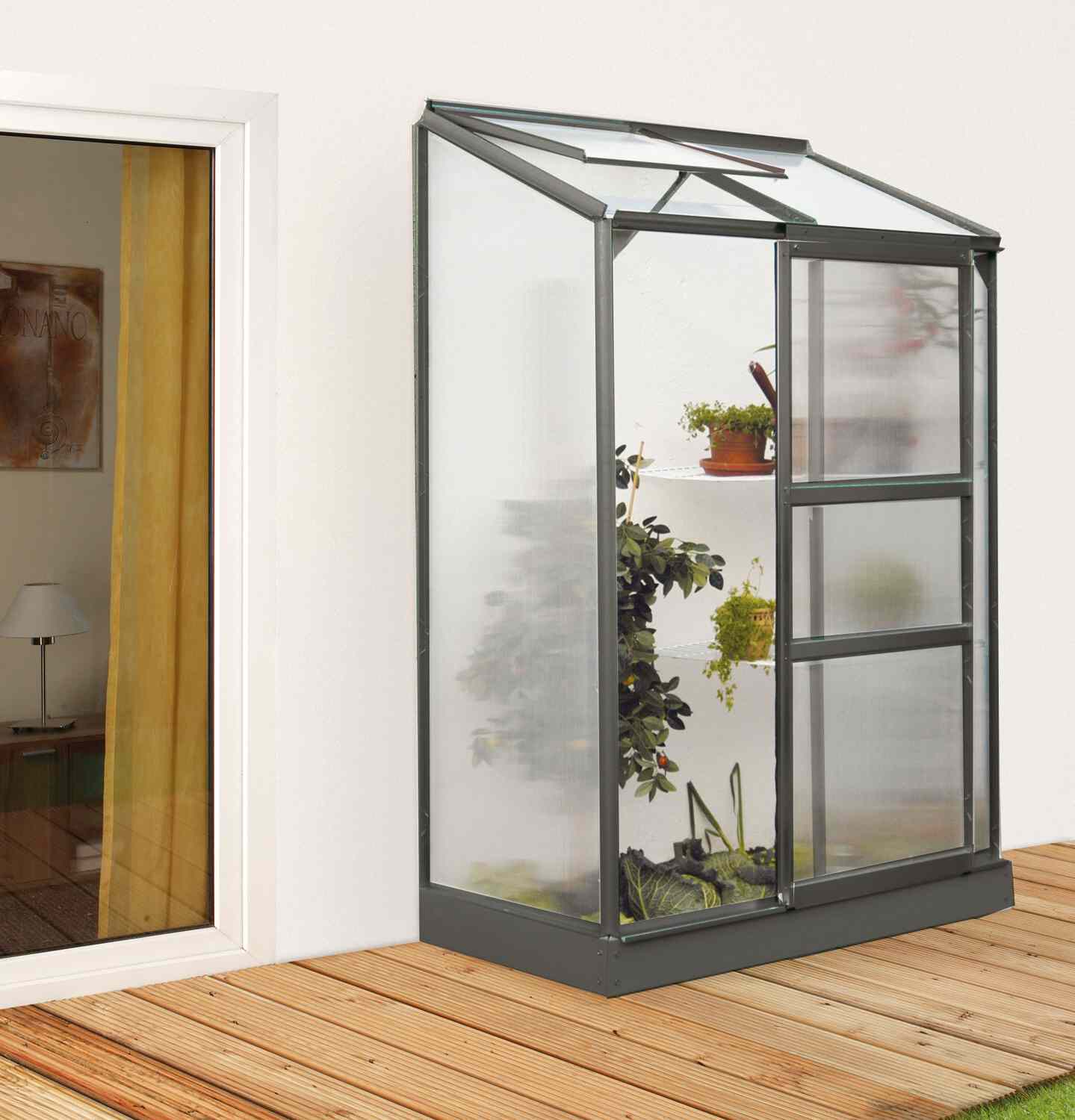 Skleník je určen k montáži ke zdi – zadní stěna není součástí konstrukce.