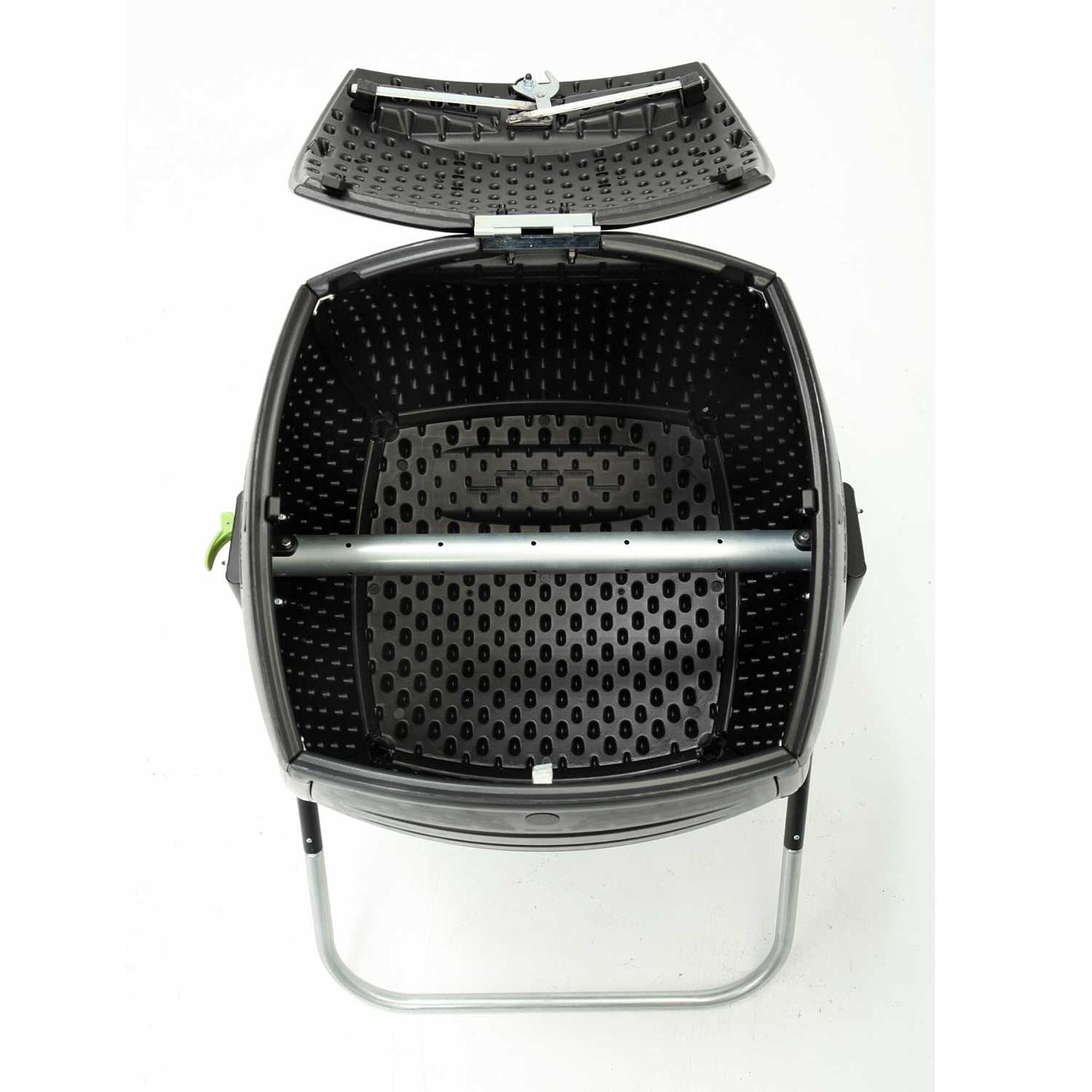 Bubnový rotační komposter pro snadné kompostování po celé vaší zahradě. Komposter má podobu černého válce s dvojitou stěnou s možností rotace na masivní nosné pozinkované konstrukci. Komposter lze zajistit v určité pozici zarážkou. Dodáváme jako stavebnici - snadná montáž.