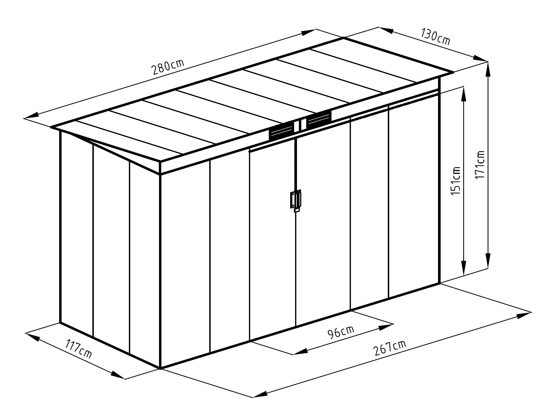 Praktický a odolný kovový zahradní domek HALLE 94 od renomovaného výrobce LANIT PLAST, s.r.o. s pultovou střechou je ideálním úložištěm pro vaše zahrádkářské, sportovní, bazénové, grilovací, campingové nebo motoristické potřeby.